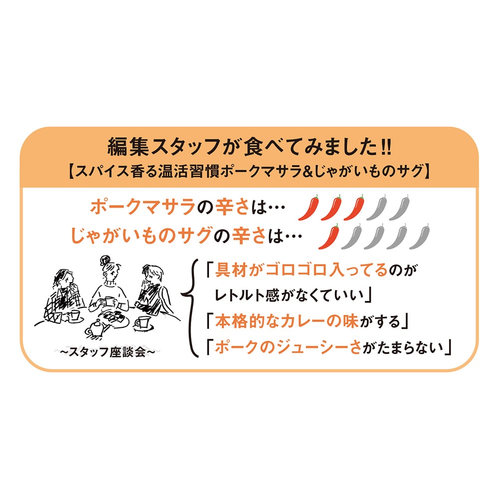 年々、体の冷えがひどくなり、この季節は特に冷えに体が慣れず困っています。 カレーは大好きですが、最近は一人前を食べるのが難しく、よく無印の小さいサイズを購入しています。 こちらのカレーは、2種類の味が、それぞれ小さめのちょうどいいサイズで、しかも温活。 もう、買うしかないと思い注文しましたが、買って大正解。買った自分を褒めたいぐらい。 特にベジタブルマサラ。お肉は入っていないのに、風味や食感も十分食べ応えあり、 スパイスの粒も感じられて本当に美味しかったです。 しかも食べてる最中から身体がポカポカとしてきて、食べ終わってからも数時間、温まりました。 さっそく追加と他の味も注文しました。 冬用にもっと買いだめしようかなと思ってます。
