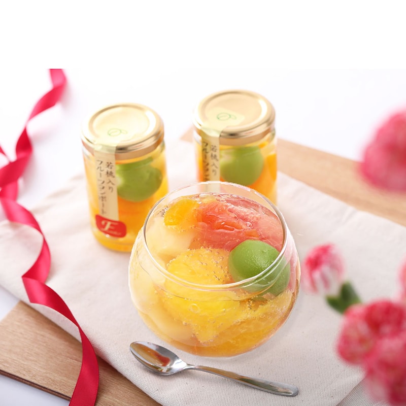 一つ一つ手作業で丁寧に。フルーツ本来の風味や味を損なわず果実の美味しさを引き出せるよう考慮し、また最後の一滴まで召し上がって頂きたいからシロップではなく上品な甘さのジュレで果実を包みました。