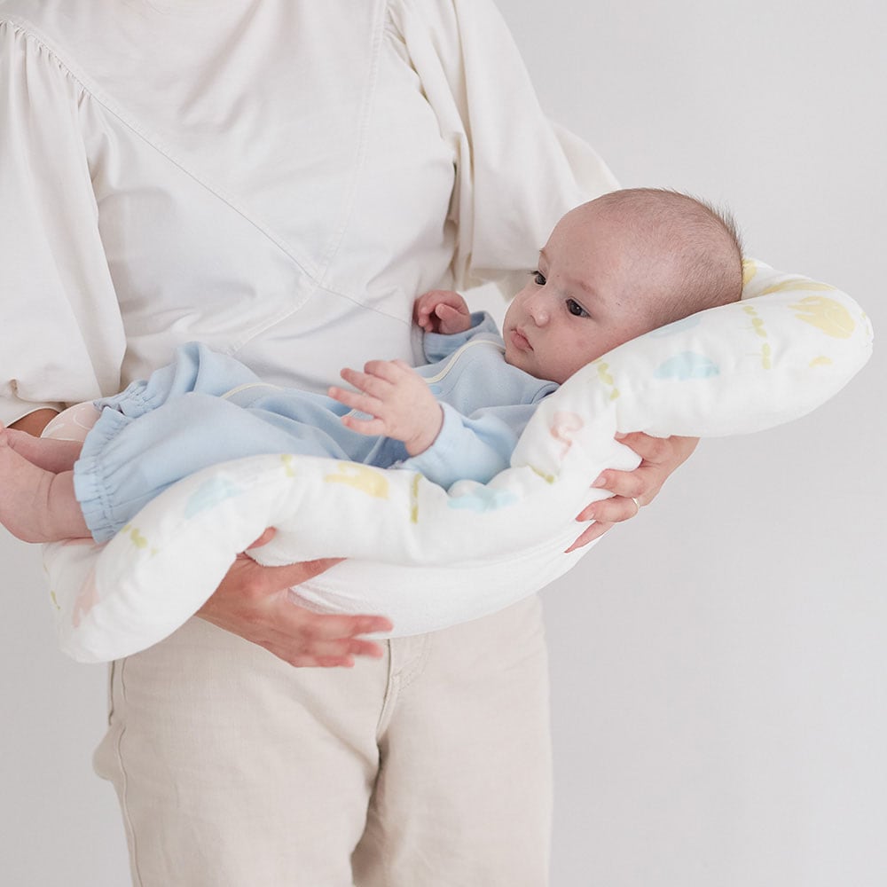 寝るとき、添い寝するとき、授乳するとき、抱っこしてもらうとき、脱衣所で服を脱ぐとき…めちゃくちゃお世話になりました!普段ガサツな人ほど買うべきです。このクッションのおかげでグラグラな赤ちゃんの首と体をしっかり支えることができました。吐き戻しが多い子だったので全部洗えてすぐ乾く素材だったのがとても良かったです。