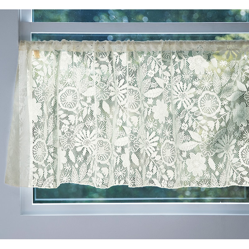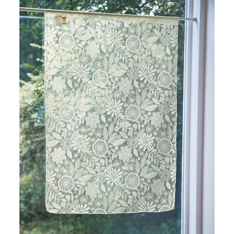 刺繍のようなお花畑 その通りです。優しい薄い生成色の地色にお花の柄がとても素敵です。小窓がパッと華やぎました。星一つ少ないのは、価格がもう少し安ければ嬉しいかな。又、サイズの幅を選べれば他の窓に使用できたのに残念です。