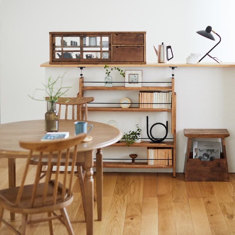 好きな器を並べて見せる収納として活用したりしています。