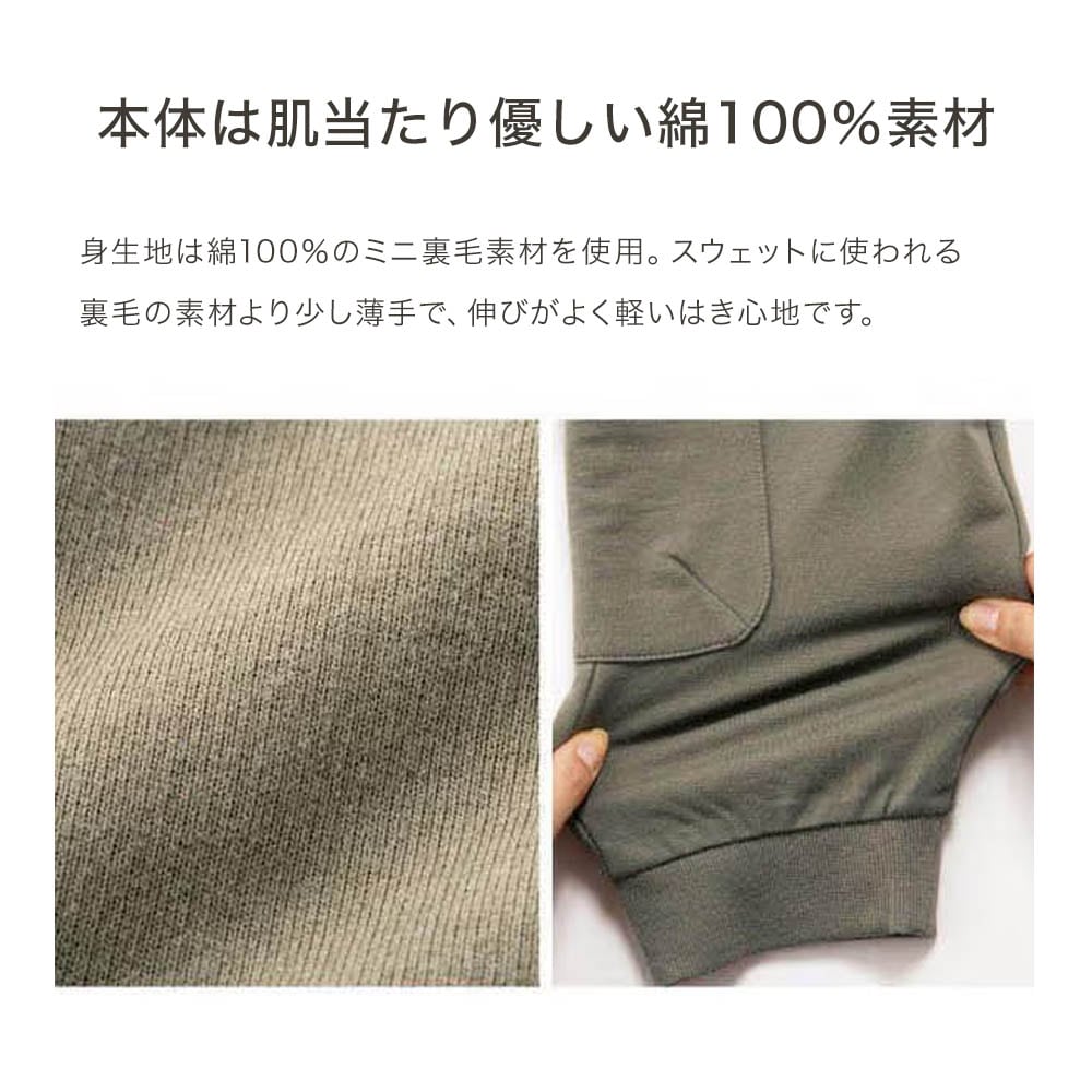 ウエストは少し余裕がありました。七分丈ですが九分丈になっています。想像通りのしっかりしたスウェット生地で穿き心地もよさそうです。
