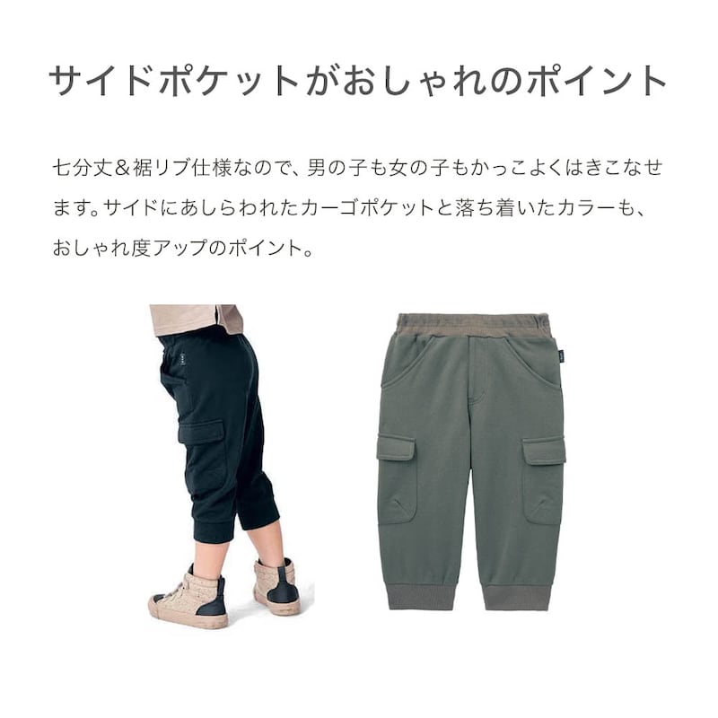 ・七分丈&裾リブ仕様なので、男の子も女の子もかっこよく