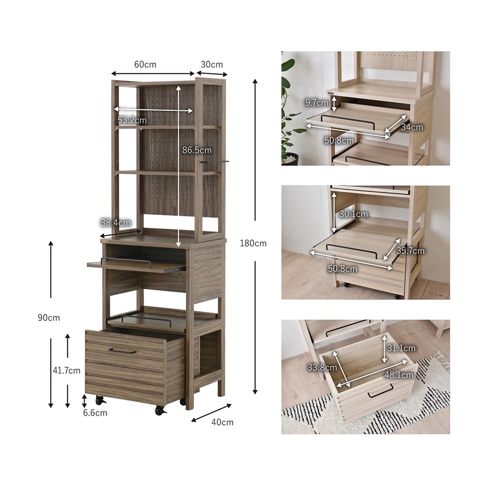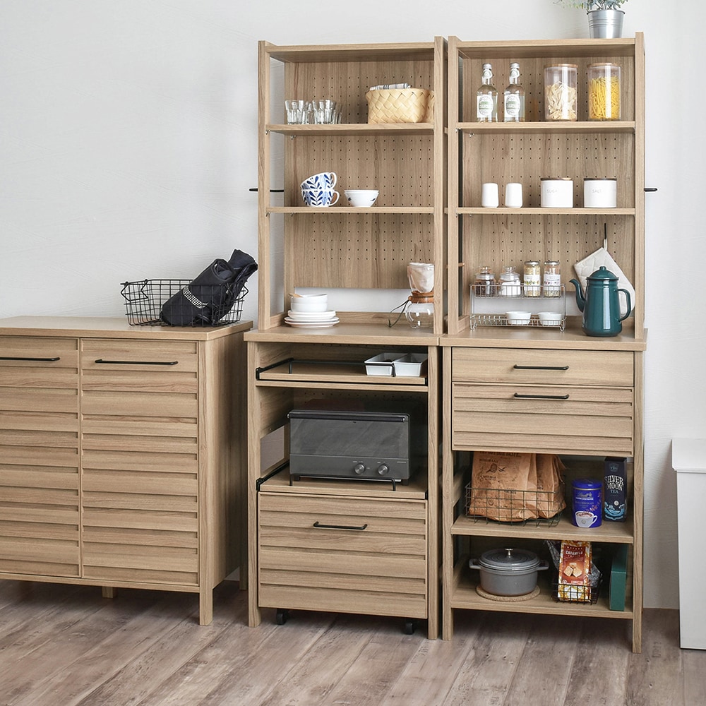 キッチンで使用しており、色味や高さもちょうどよく、下の引き出しには重めの調味料をたくさん入れていますがスムーズに動きます。
