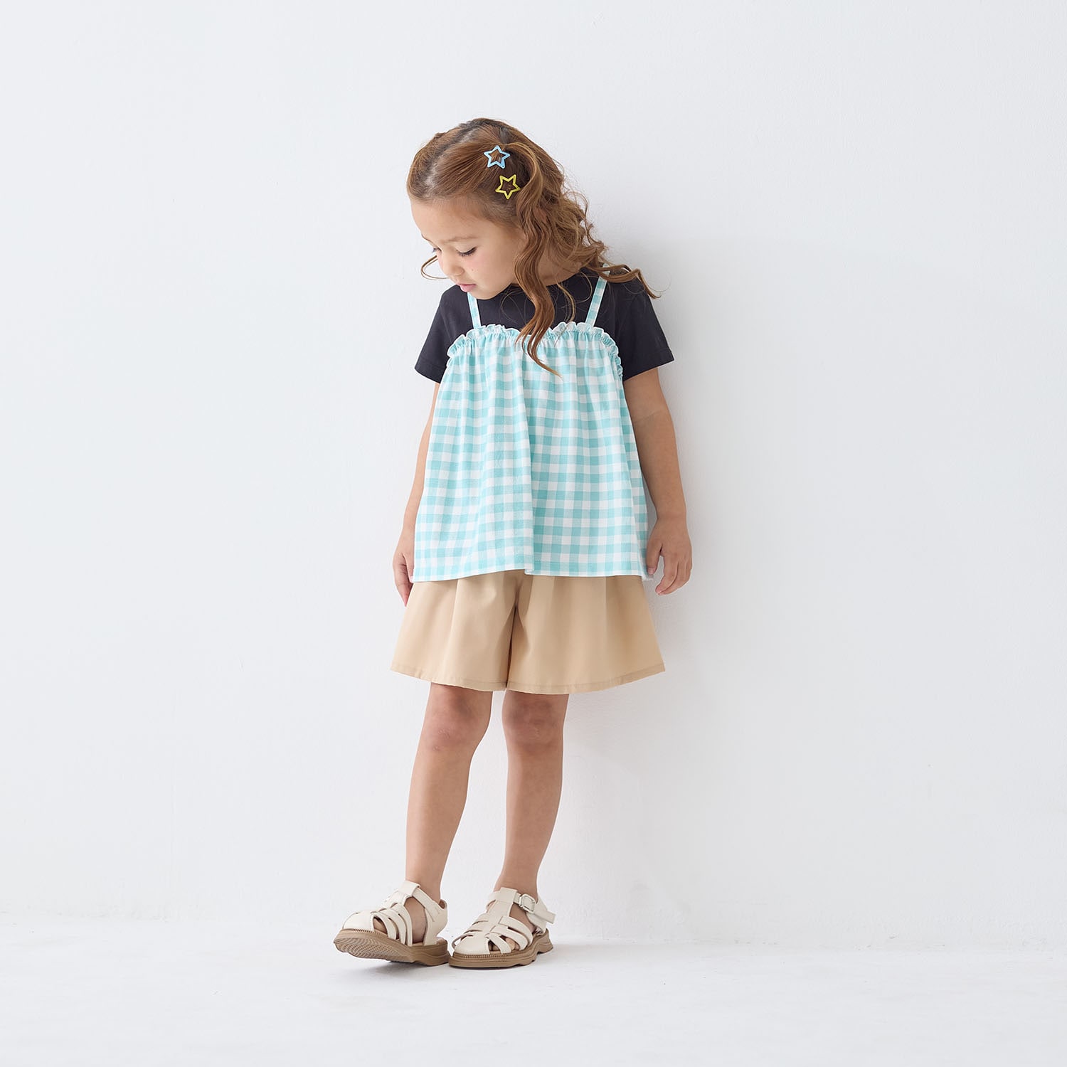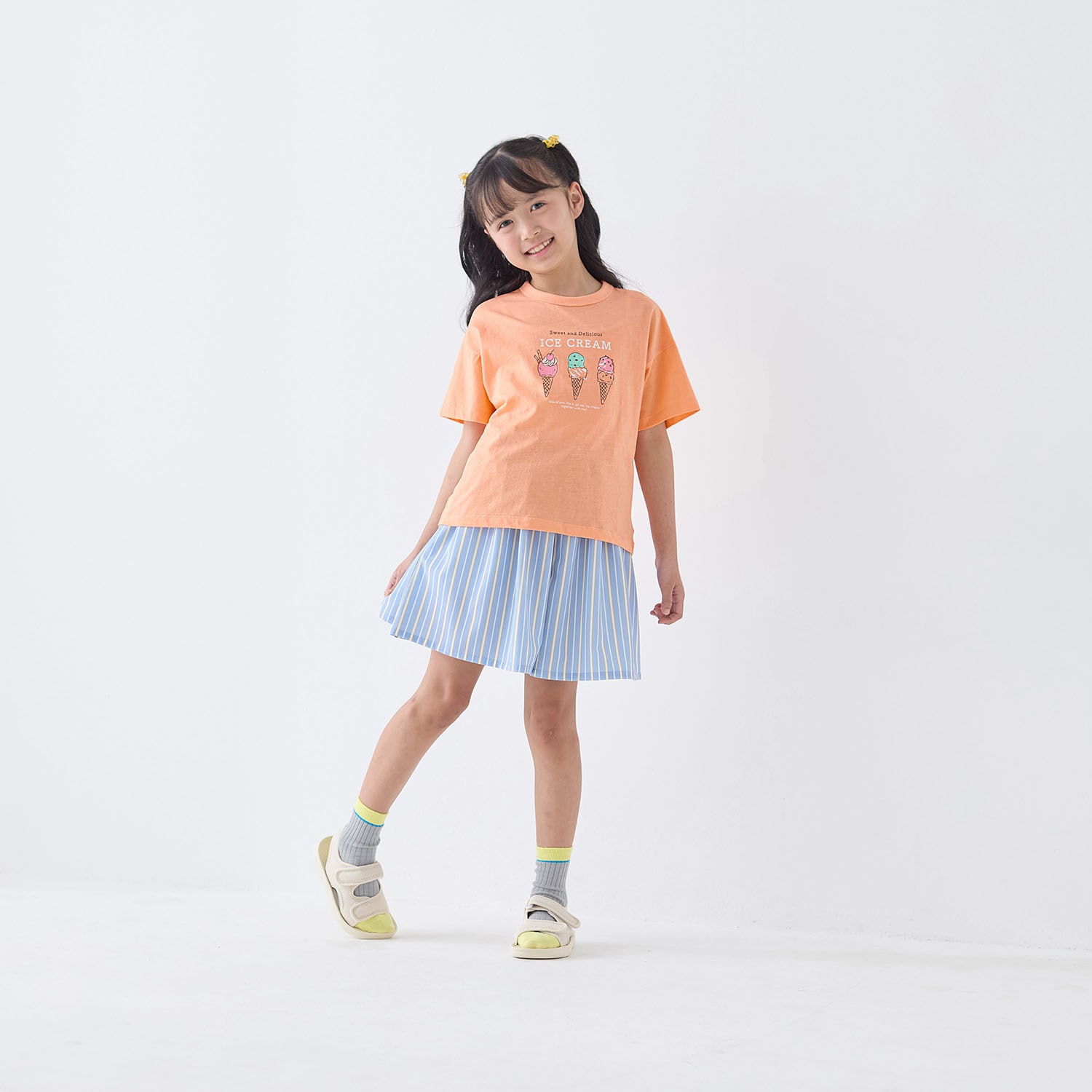 小4の娘が自分でカタログから選んで買いました。カタログの写真よりも色がキレイ(ライトブルー系ストライプ)です。なによりもとにかく軽く、サラサラの肌ざわりを気に入っています。軽いけどハリのある生地なので安く見えません。ギャザーもたっぷりあるのでふんわりとボリュームのあるシルエットです。今までいろんな子どもの商品をベルメゾンで買ってきましたが、このキュロットは本当に買って良かったです。お値段以上のクオリティで娘も私も大満足です。