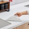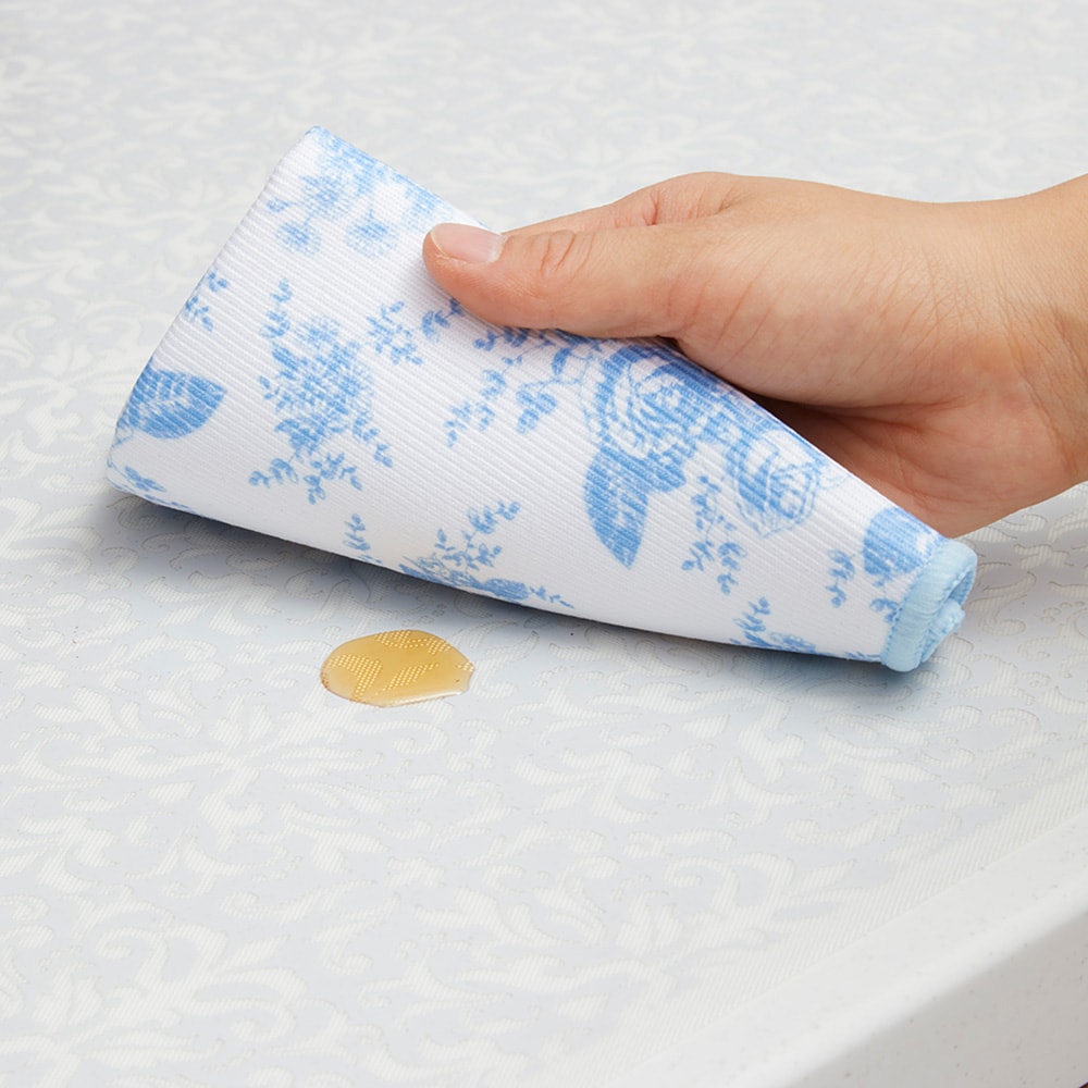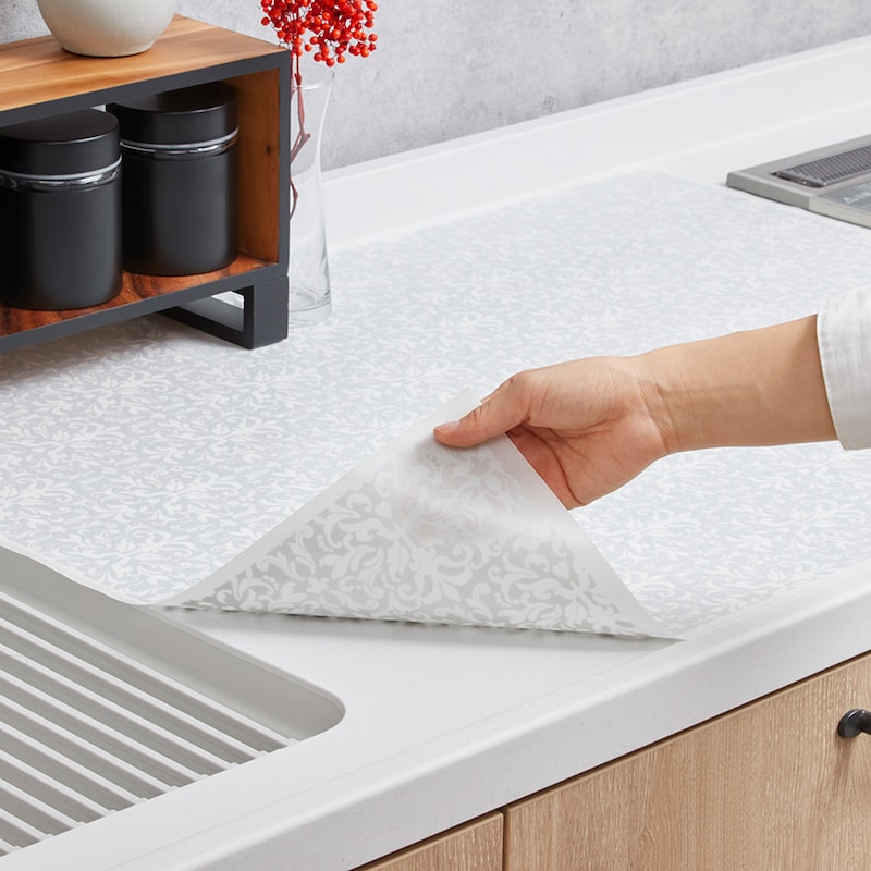他社製品を使用していましたが、水が隙間から入って毎回拭かなくてはいけないし、すぐに変色してしまいなんだが使いにくいので、こちらを購入しました。ピタッと吸着して水も入らないし柄も可愛いし傷もつかないしとても気に入りました。人工大理石も傷がつかないしまた購入したいです。