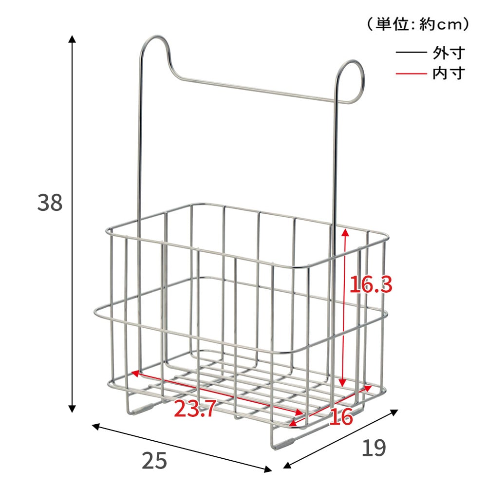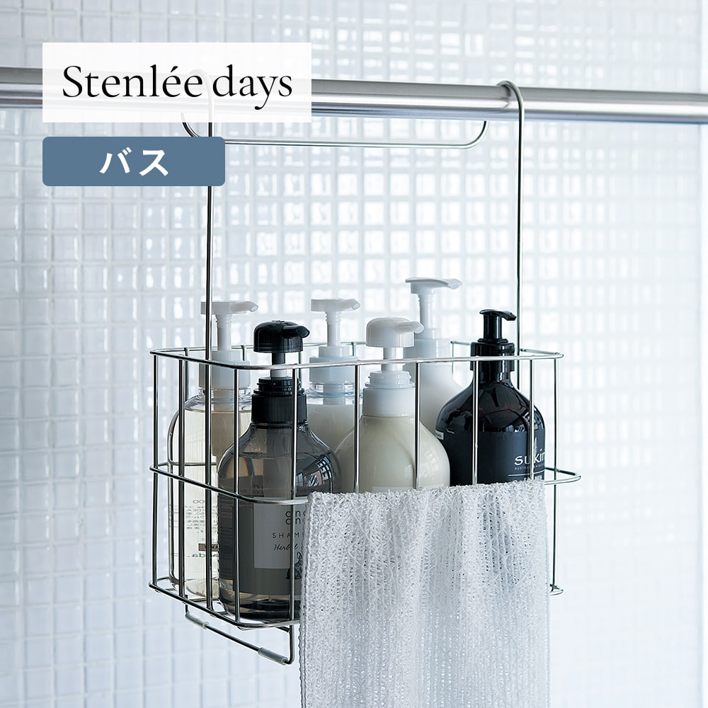 お風呂で使うものが全て入りました。お風呂場のタオル掛けにかけるとまっすぐにはならず斜めになりますが付属のシリコンのチューブで傷がつかないしガンガン音もしないので、使う時はタオル掛けにかけ、それ以外は浴室の洗濯干しの棒に引っかけています。一気に移動できるし、水切れがいいので使い勝手がいいです。ただ欲を言えばステンレスの網目が重なるところが掃除しにくいのでパンチングのステンレスのざるのようにツルツルの重なり合う部分がないカゴだと最高でした。