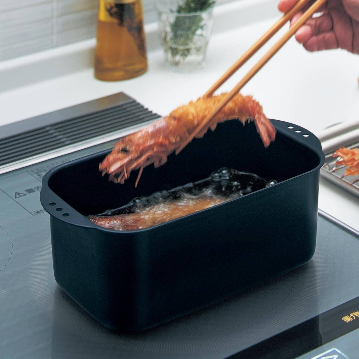 初めて揚げ鍋を購入しました。 今までフライパンや小鍋で十分と思い、買わずにいたのですが、買って正解でした。 軽くて扱いやすく、デザインもおしゃれな感じ。今までは揚げ物した後のフライパンなんて片付けるのが億劫でしたが、小さいし軽いので洗う気になれます。乾くのも早い! 調理は、カラッと揚がって美味しくできました。3人家族でちょうどいい大きさ。 四角いので春巻きも揚げやすかったです。 フライパンを使っていた頃よりも美味しくでき、揚げ物をする機会が増えました。 買って良かったです!