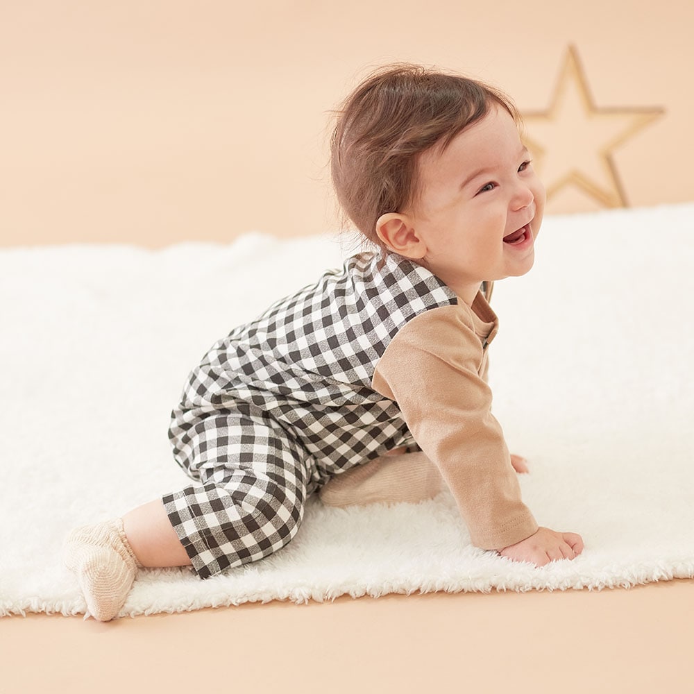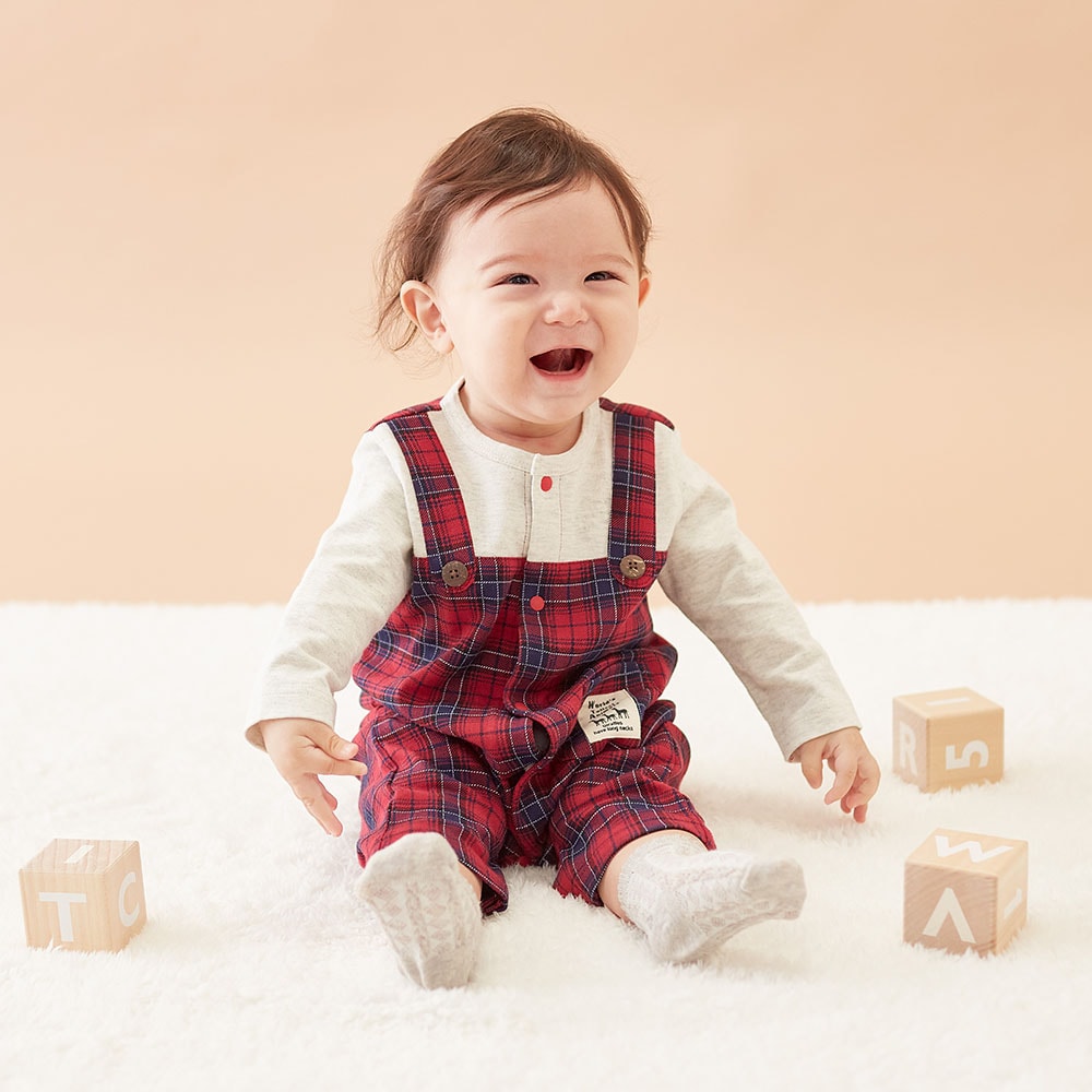 生後4ヶ月の男の子、体重6、6キロでサイズ70を購入。 ちょうどぴったりサイズでした。 赤のチェックがかわいいです。