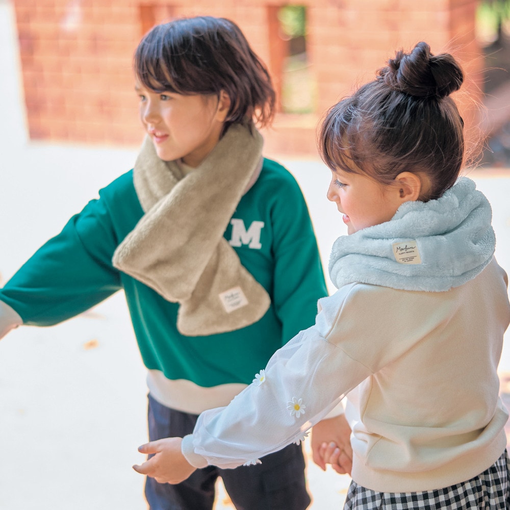 髪の毛が伸びてきたので、ネックウォーマーではなく、マフラーを購入。あったかくて子供も気に入ってくれて良かったですが、名前を書くところがなかったので、タグの空きスペースに記入しました。