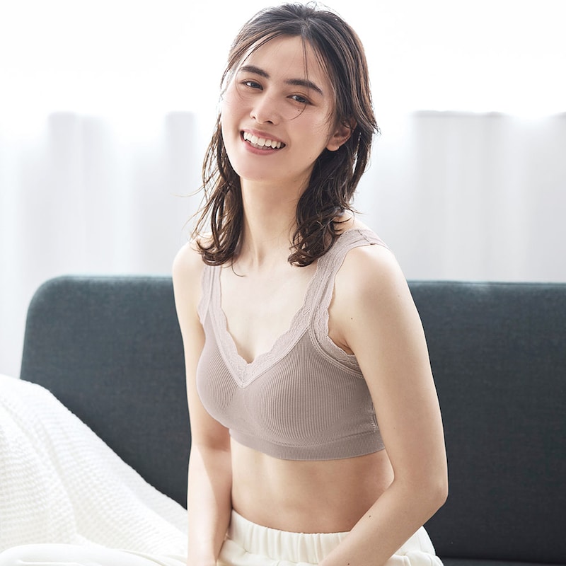 レースが繊細でかわいいです。 色も茶色すぎない絶妙なニュアンスカラーがおしゃれでした。 着心地はとにかくらくちん。 在宅勤務の日なんかはこれの上にワンピをすとんと着るのがちょうどいいです。 肩が見えても下着っぽくないので宅急便の受け取りも問題なし。 カップがちょっとぶ厚いけど許容範囲です。