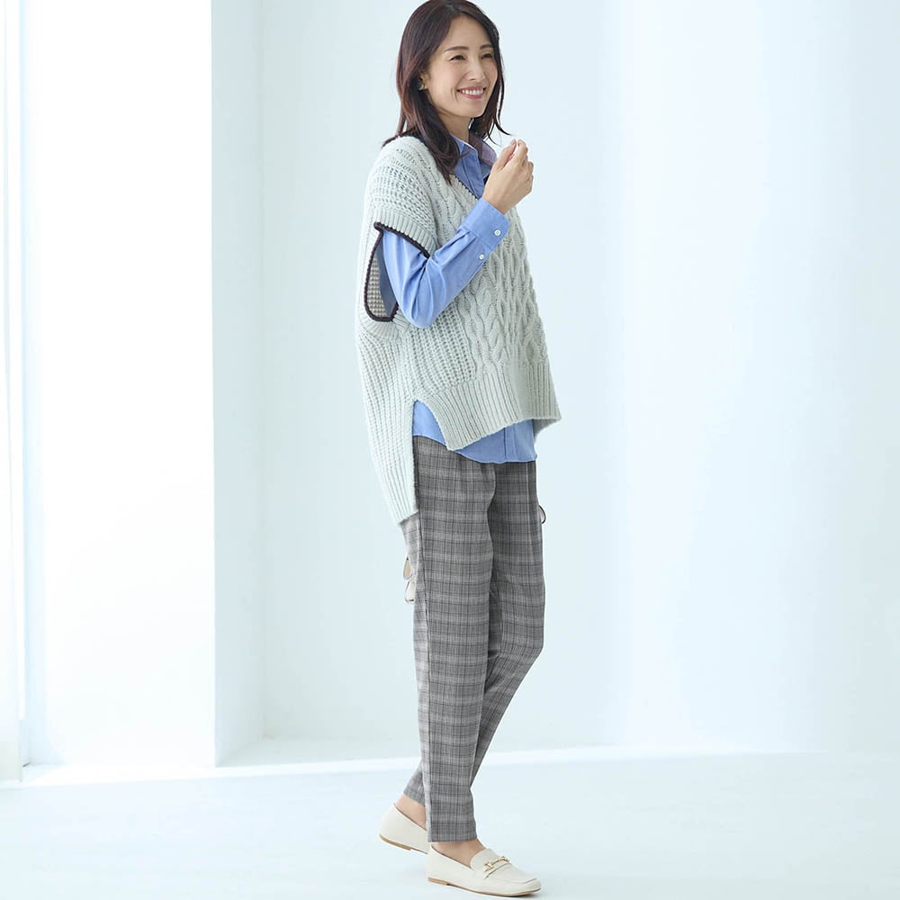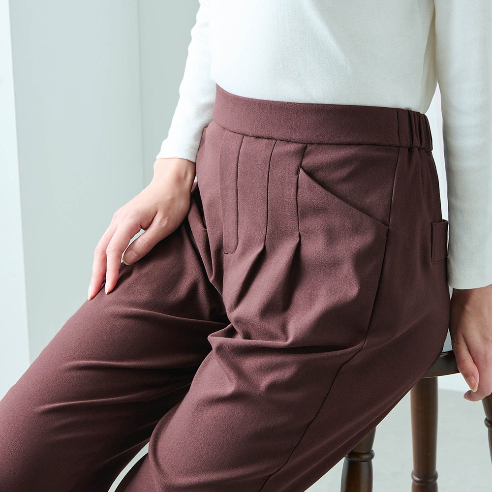 このシリーズのパンツの春物素材を以前に購入しています。 とても着心地良くて、ウエストがゴムなのが着脱しやすいですし、ネーミングの通り『座りやすい』です 今回ははじめて冬素材に挑戦。 厚みがあると太って見えるかな・・・と思いましたが、そこまで厚みのある素材でもなく着やせします。 裏地の起毛素材が肌に触れるととても気持ちがよいです。冬になると一層暖かそうです。