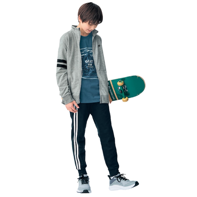 ジュニア服ですが自分用に。季節の変わり目に家で羽織るものを探していて、レディースにイメージしてるものがなく(パーカーが好きでなく)、ジュニアで探してみたら、大丈夫そうなのを見つけて。背もそんなにないので、丈もちょうどお尻くらいでいい感じ。先に他で買っていたジャージみたいなボトムと生地の薄さも同じくらいで揃いみたいになりました。よかった。
