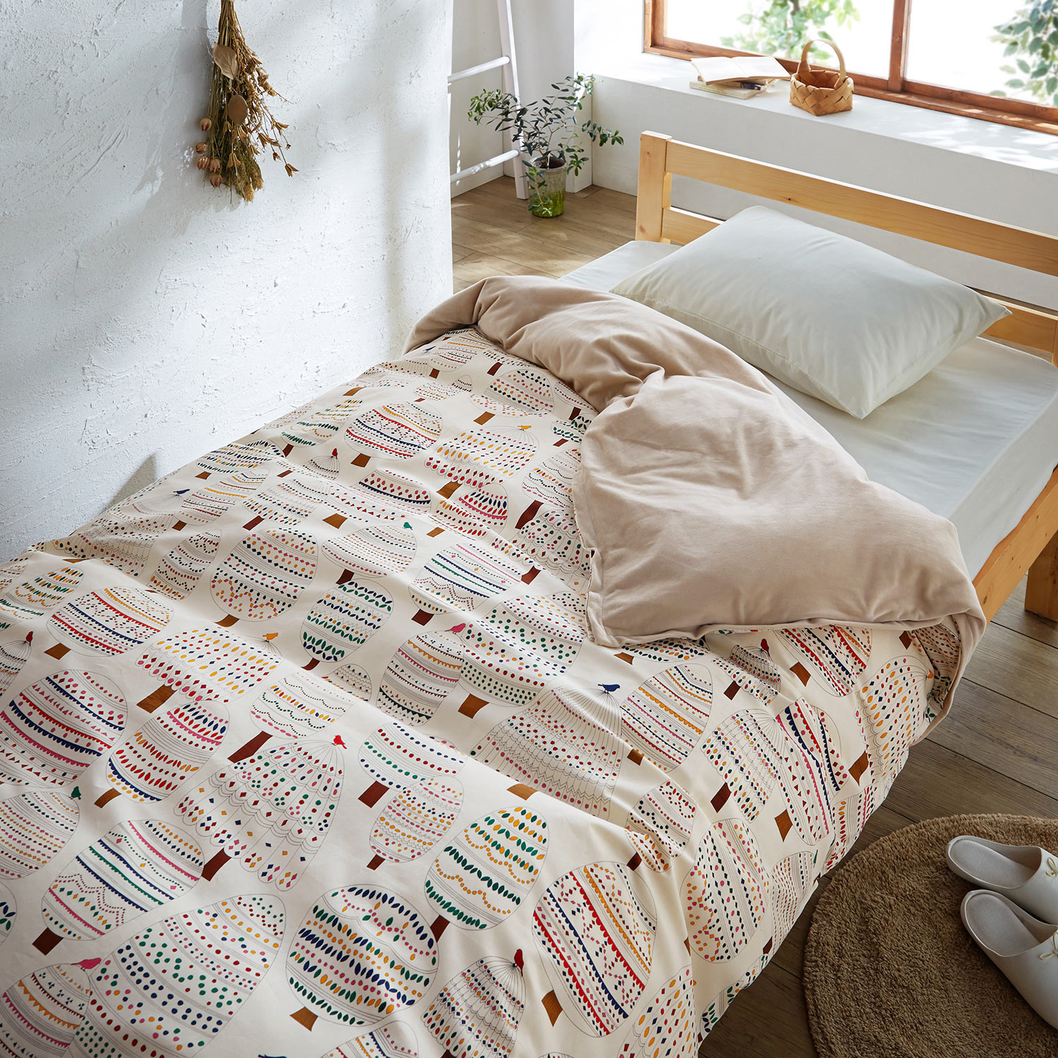 ●表生地には綿100%のブロード生地を使用し、木々をおしゃれにデザイン