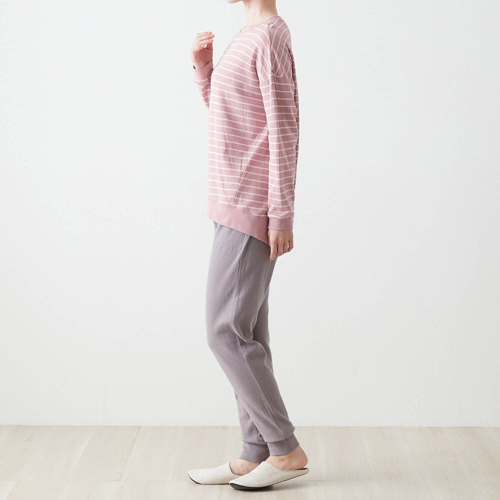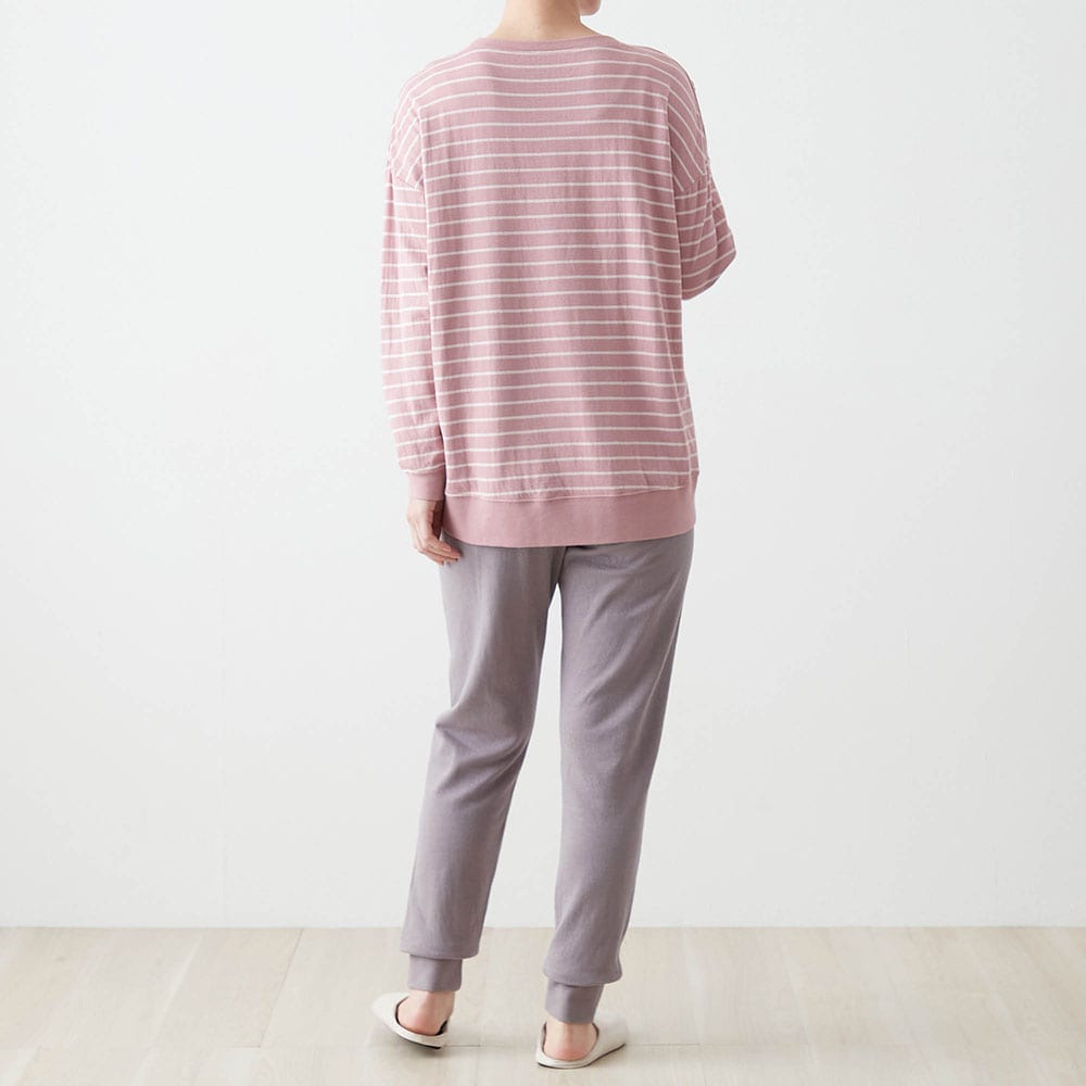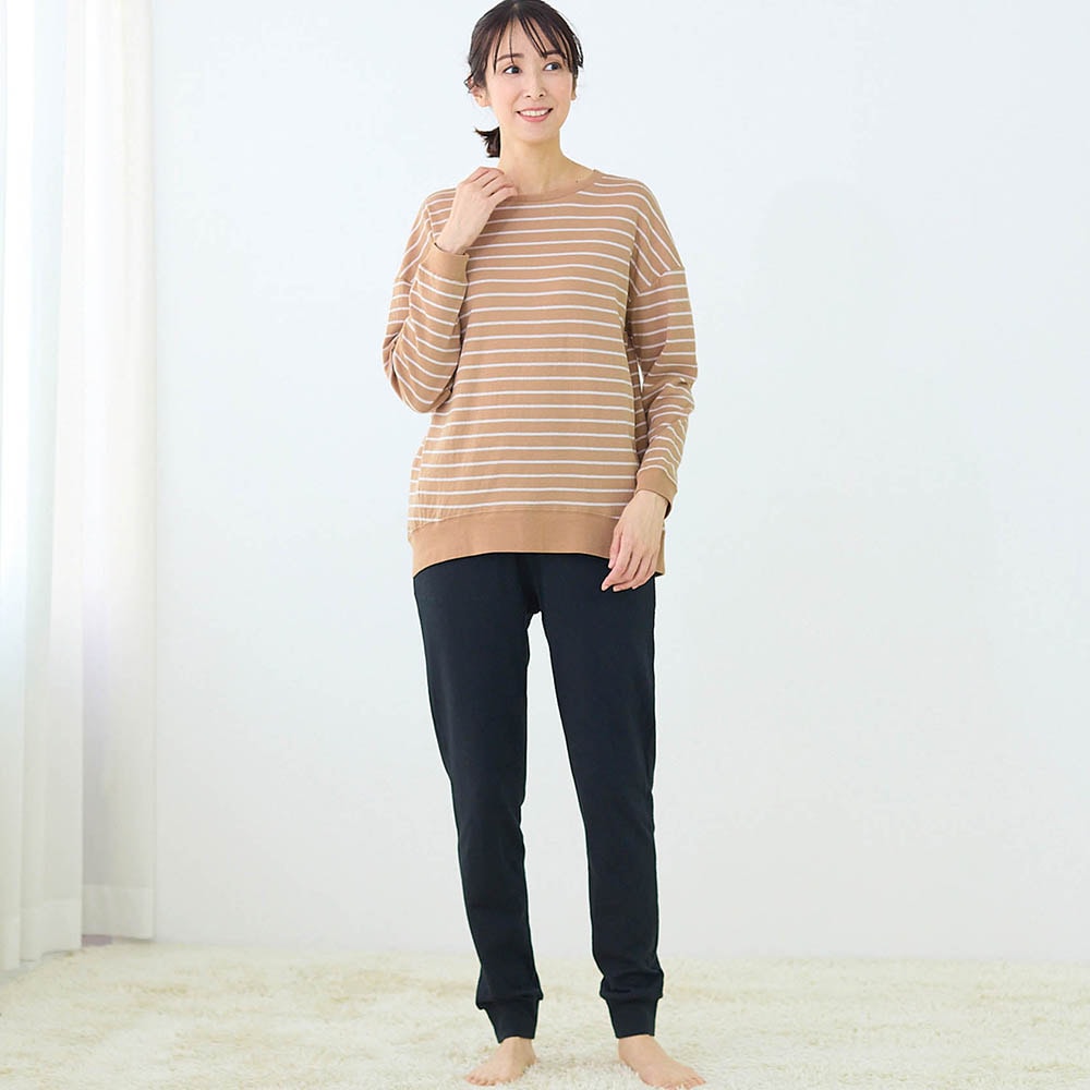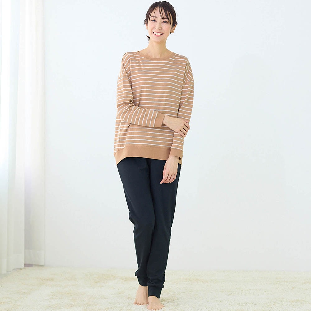 柔らかくてゆったりしていてとても良いです。2色買いましたが、ズボンも紺色ではなく、他のパジャマと同様に明るめの色だといいなと思いました。いつもMとLで迷いますが、パジャマなので、ゆったりLサイズにして良かったです。ズボンも長過ぎません。中にあったか下着を着てパジャマを着ています。