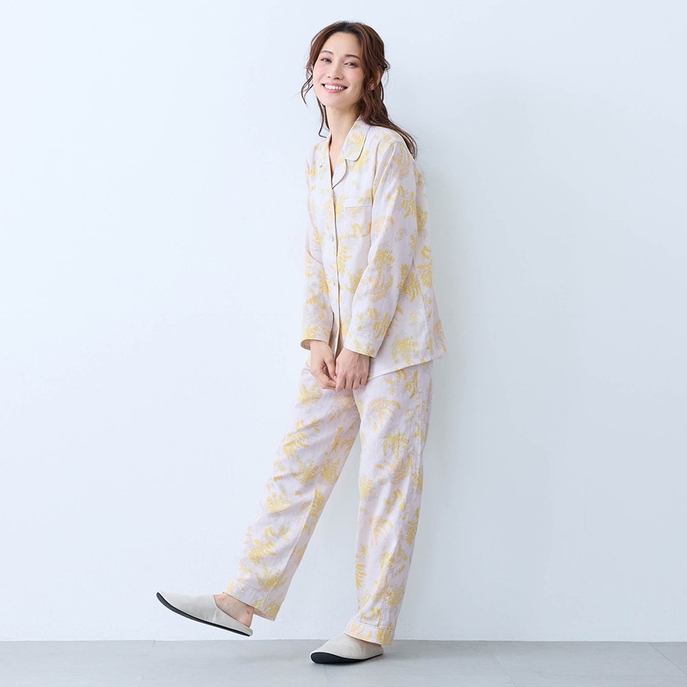 季節の変わり目に着れる、ガーゼ素材の長袖パジャマ探してて。 こちらのシリーズずーっと検討中でした。 イエロー系で明るい色柄が欲しいな~と思ってたら… 出ました!希望通りの新色が! 早速ミモザ購入。 色は画像通りで、グレージュとイエローが派手すぎず地味すぎず、くつろぎ時間に気分が明るくなるデザインだと思います。 まだ洗濯してないけど、軽いから乾きも早そう。 どれくらい柔らかさが増すか楽しみです。 身長160cmですが、ジャストサイズだったので、余裕もたせてLサイズでも良かったかな~