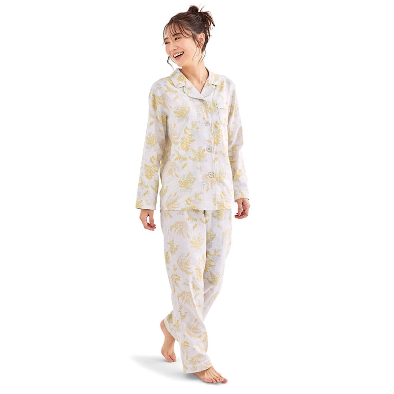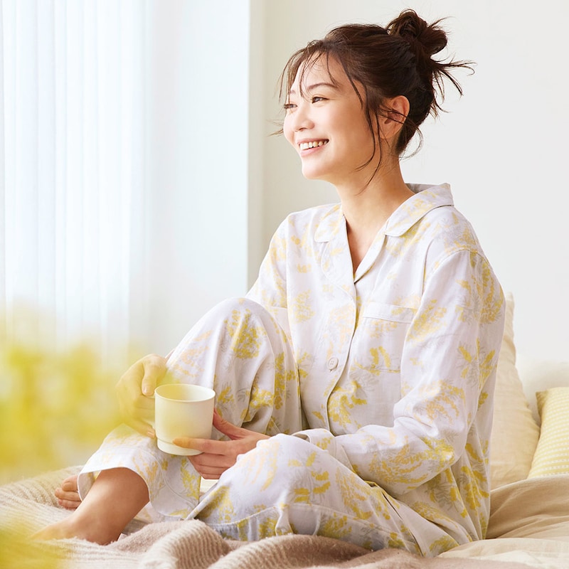 季節の変わり目に着れる、ガーゼ素材の長袖パジャマ探してて。 こちらのシリーズずーっと検討中でした。 イエロー系で明るい色柄が欲しいな~と思ってたら… 出ました!希望通りの新色が! 早速ミモザ購入。 色は画像通りで、グレージュとイエローが派手すぎず地味すぎず、くつろぎ時間に気分が明るくなるデザインだと思います。 まだ洗濯してないけど、軽いから乾きも早そう。 どれくらい柔らかさが増すか楽しみです。 身長160cmですが、ジャストサイズだったので、余裕もたせてLサイズでも良かったかな~