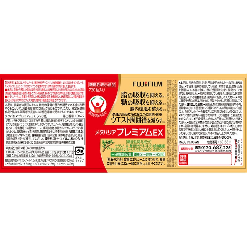 メタバリアシリーズ最高峰。脂も、糖(※1)も吸収は抑える。(※1)サラシノールで報告されている機能性として