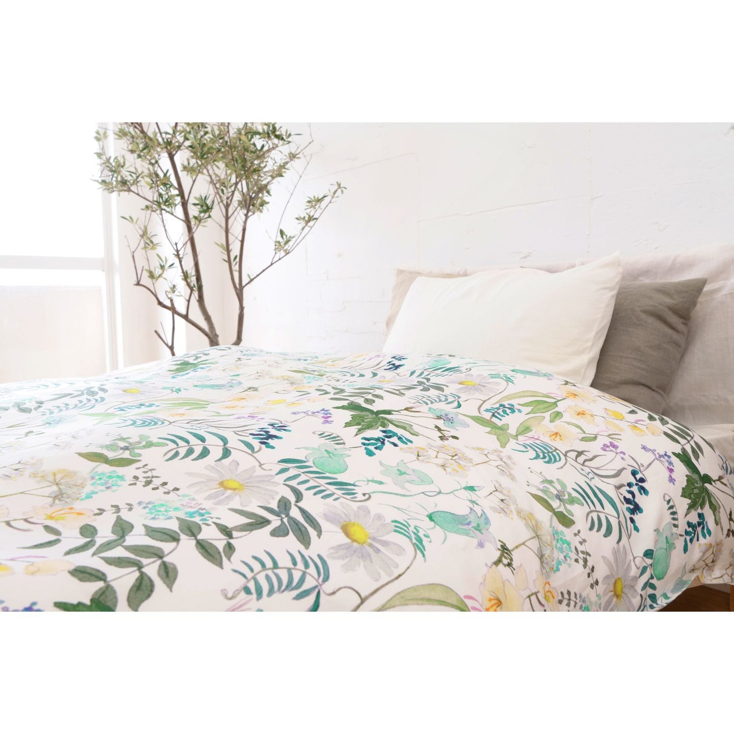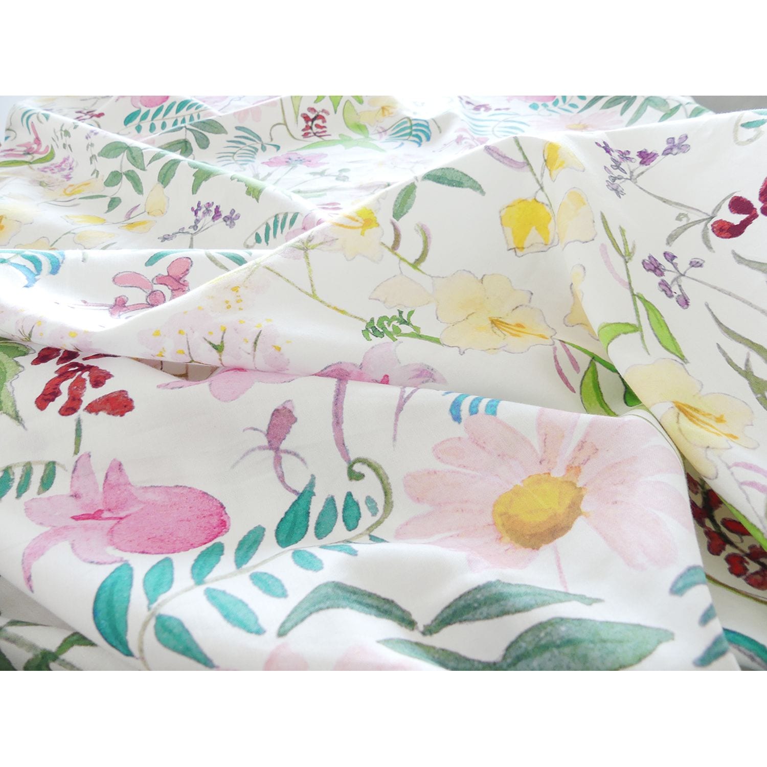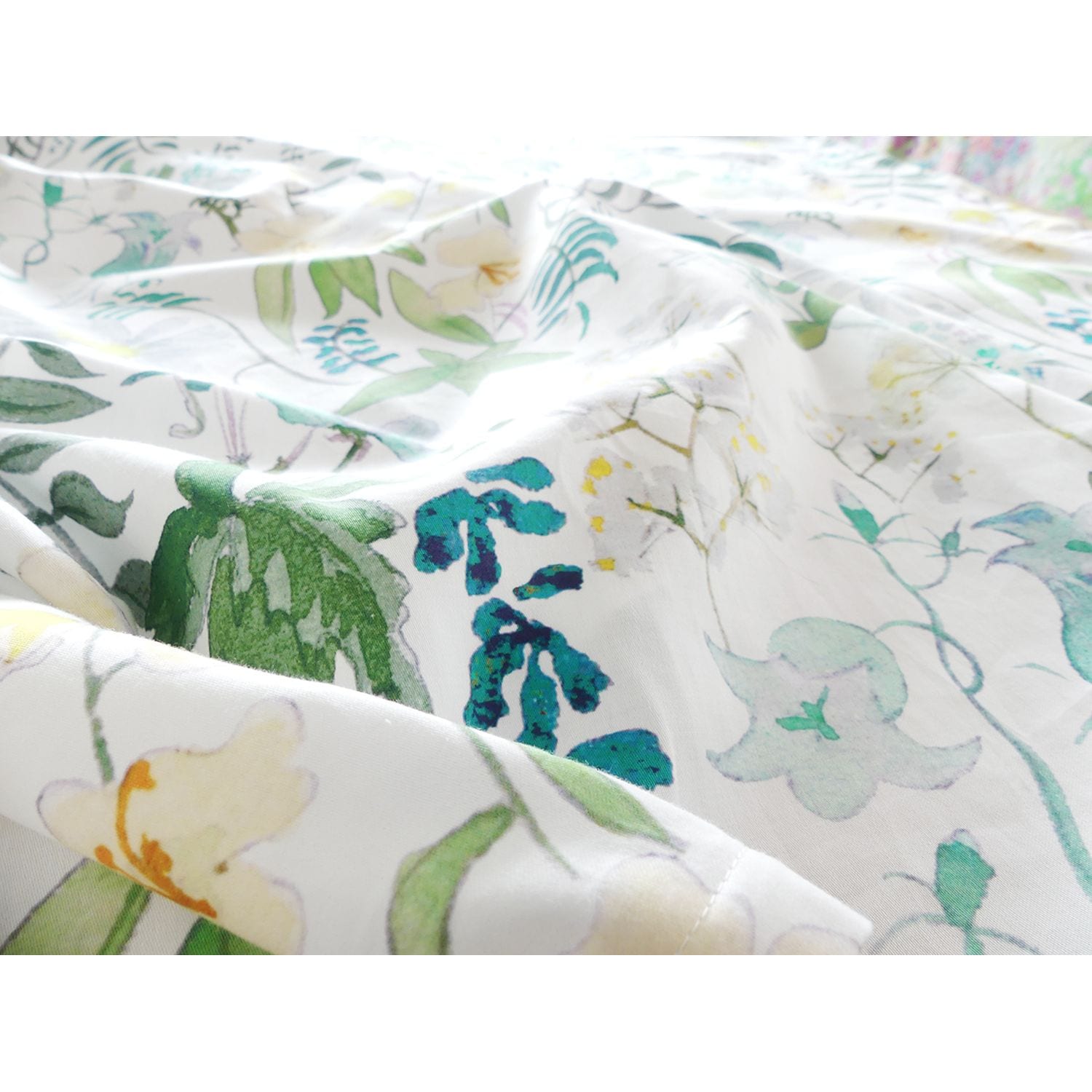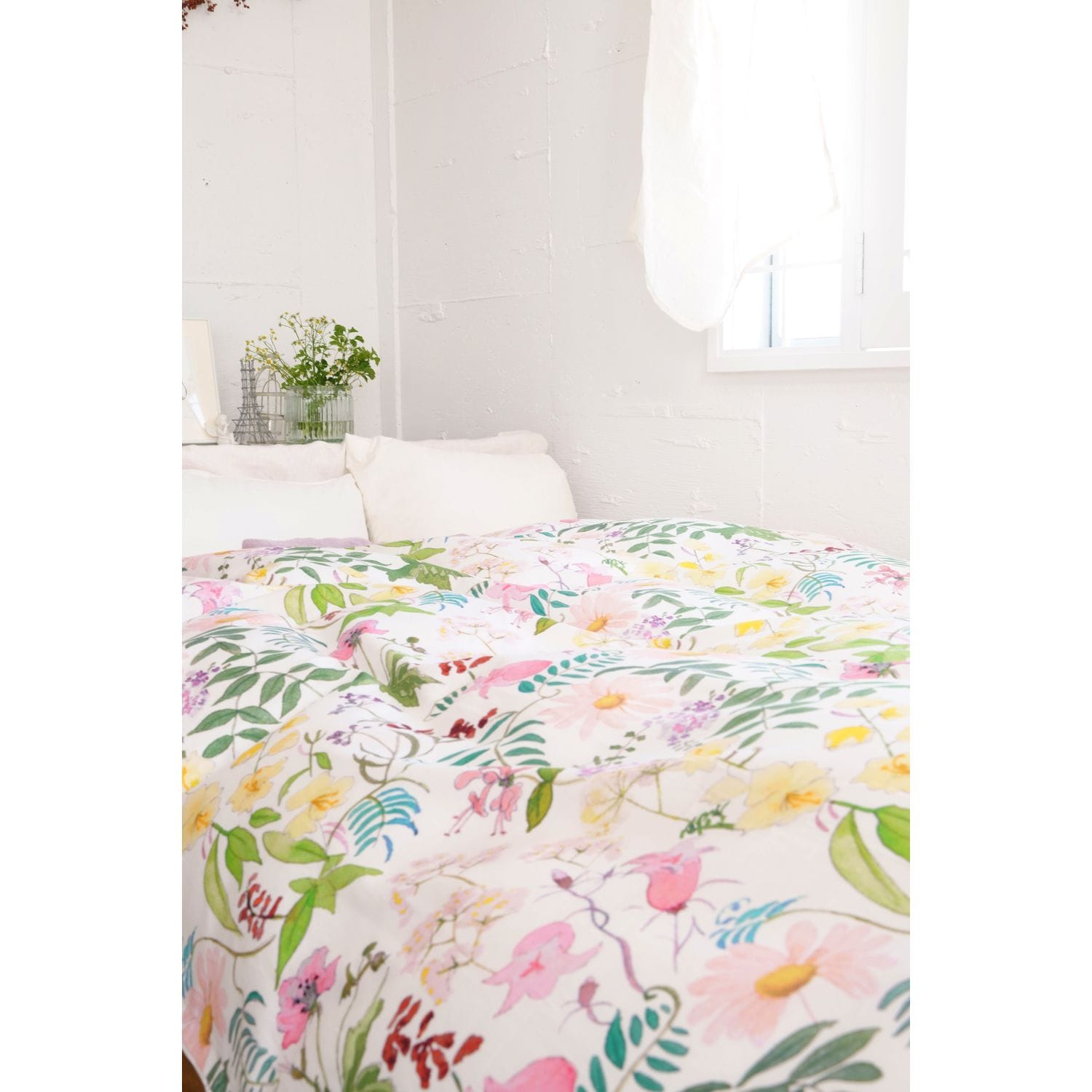 ●表生地には綿100%のサテン生地を使用し、水彩タッチの落ち着いた花柄が寝室に映えるリバティ社のデザイン