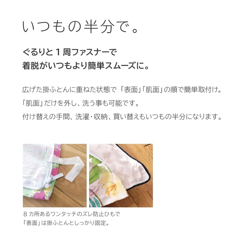 ●表と裏の生地が分割できる、画期的な掛け布団カバーです