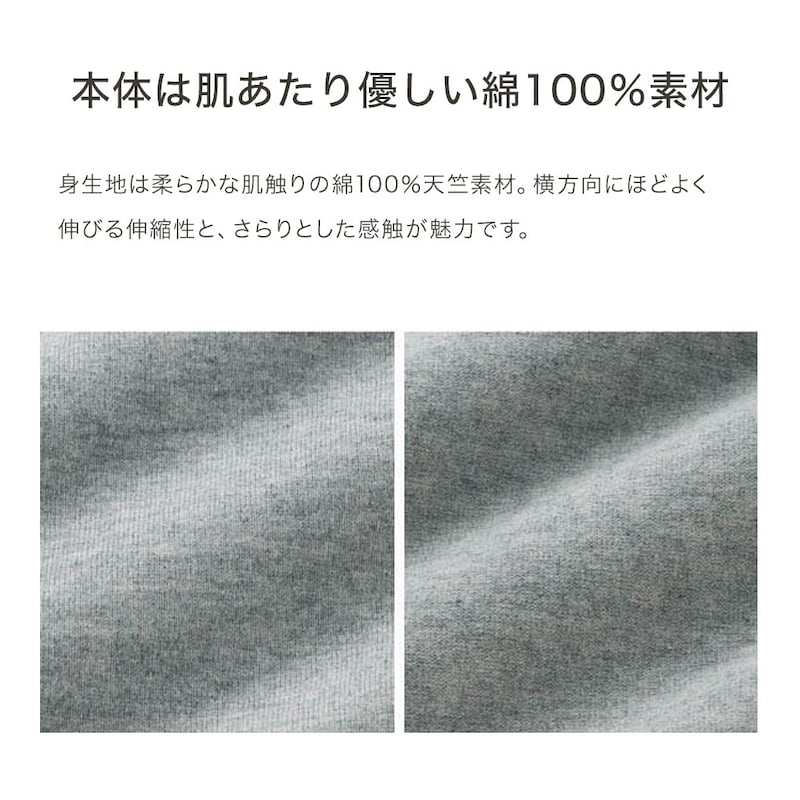・身生地はやわらかな綿100%天竺素材を使用しており、着心地も快適