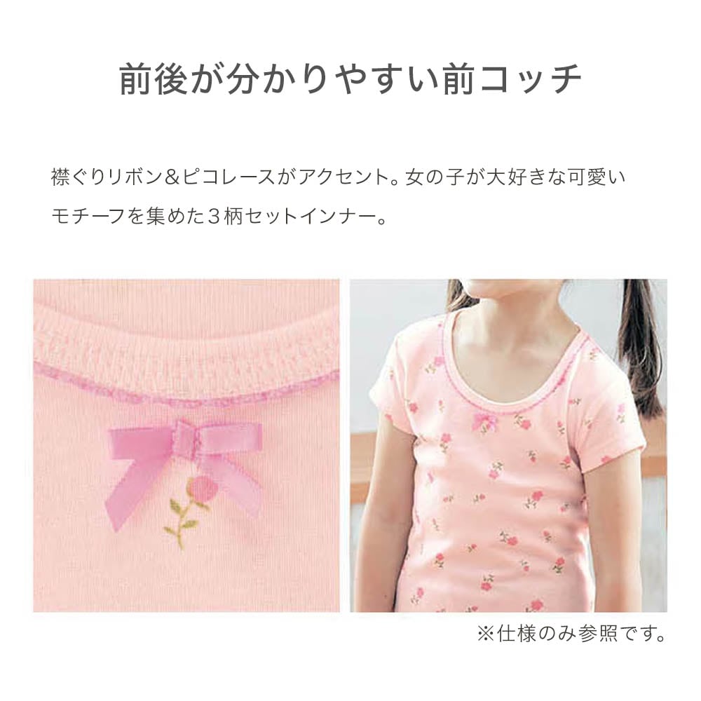 前コッチ選べるガーリープリント綿素材タンクトップ(インナー)3柄セット 【子供インナー】