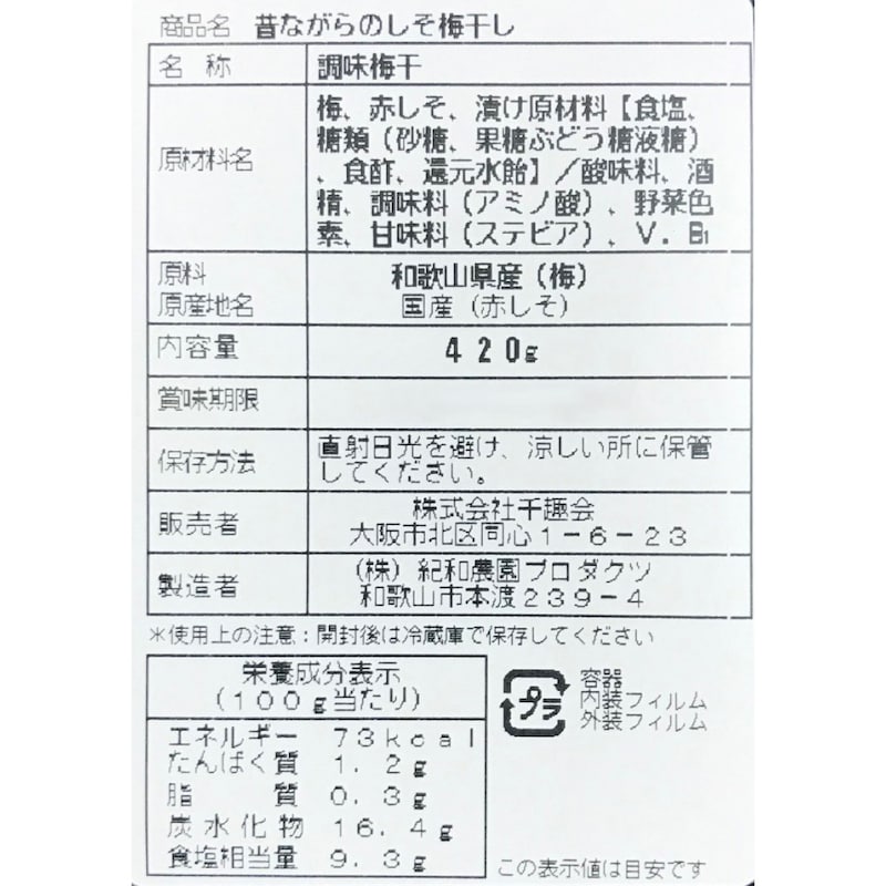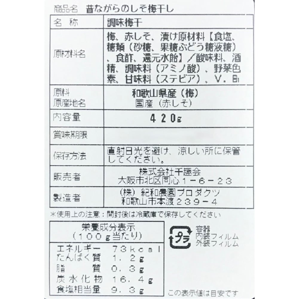 「昔ながらのしそ梅干し」とありますが、まったく違いました。