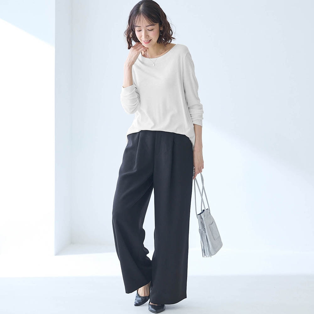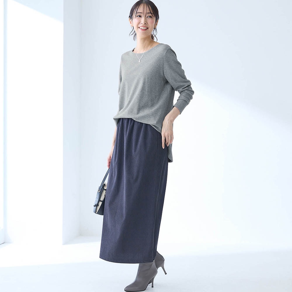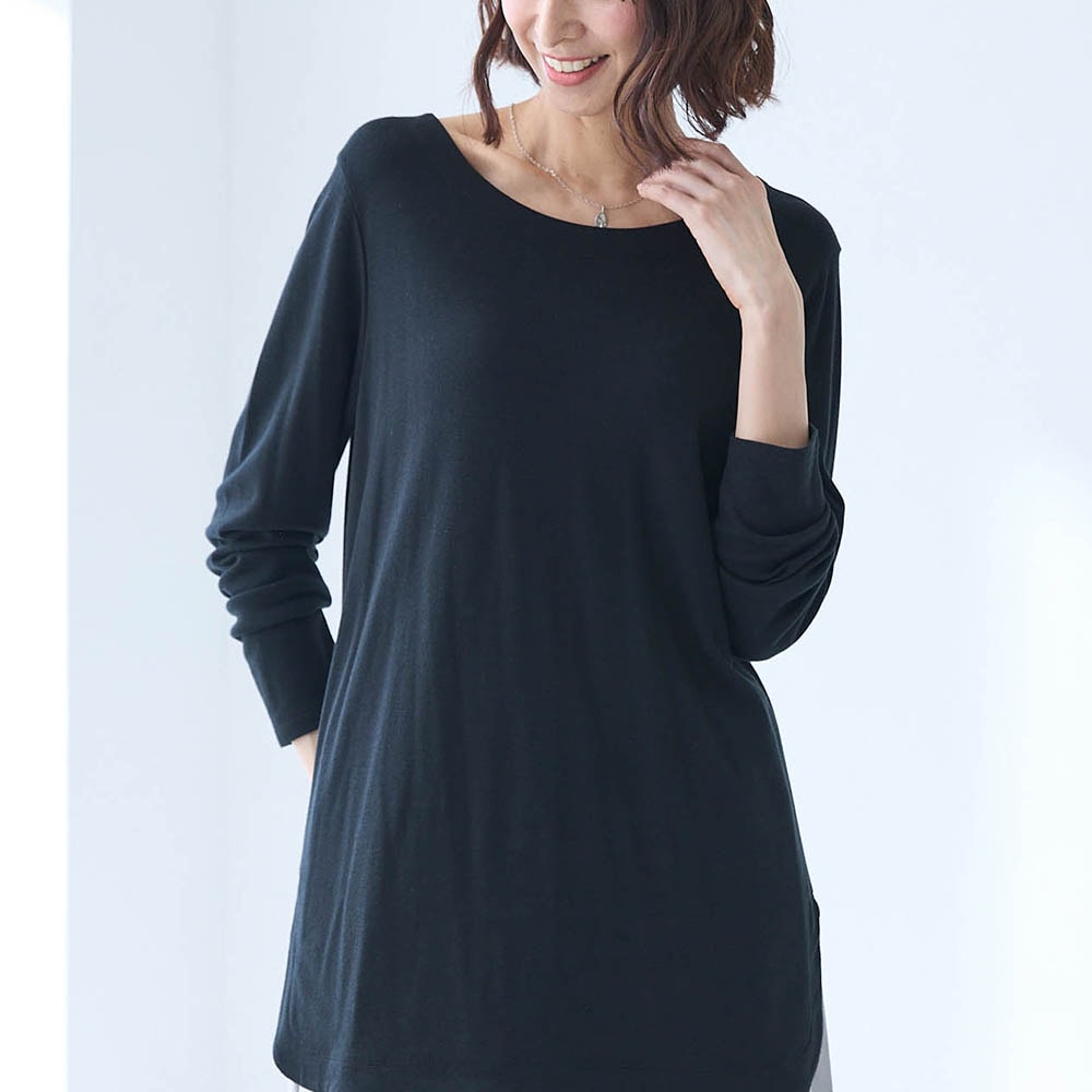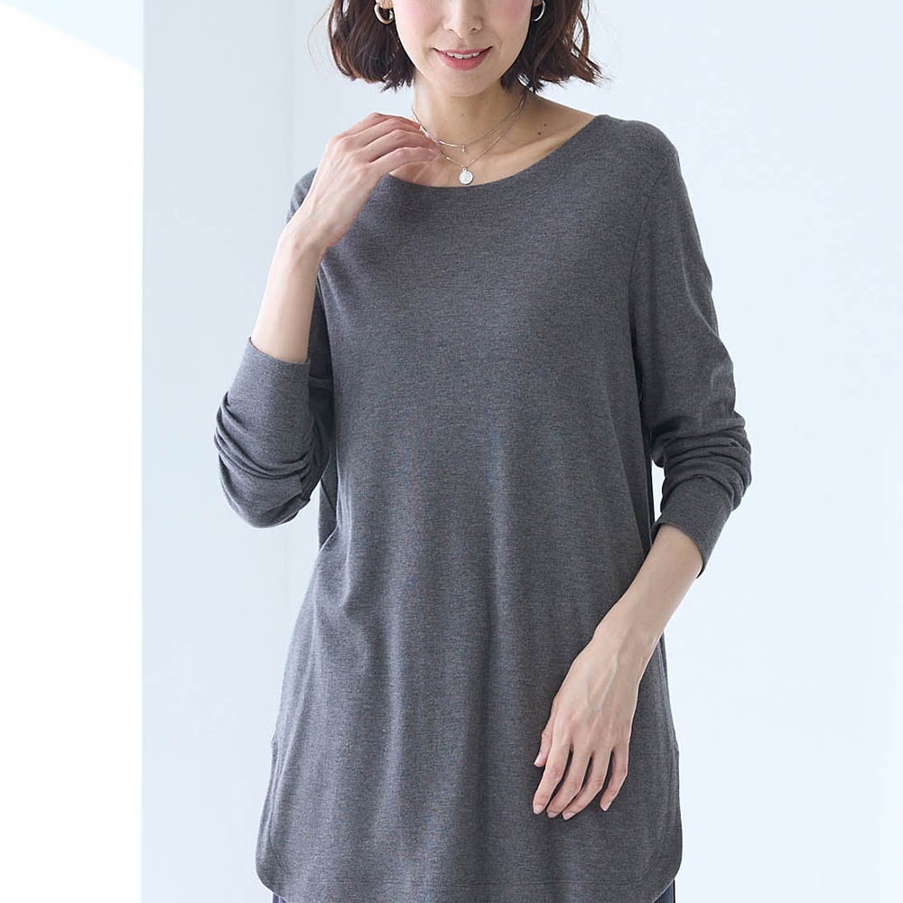 レーヨンが半分入っているので落ち感が良くセーター等を重ねた時にごわつきません。