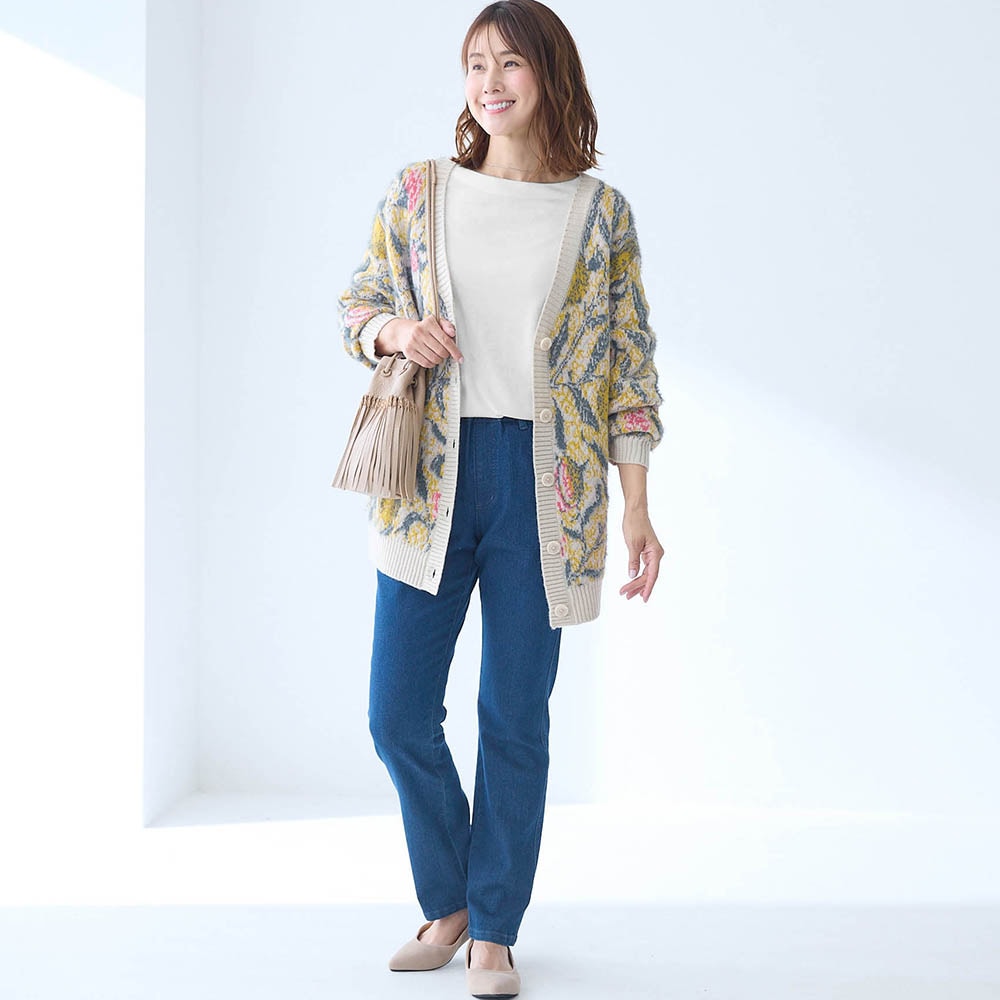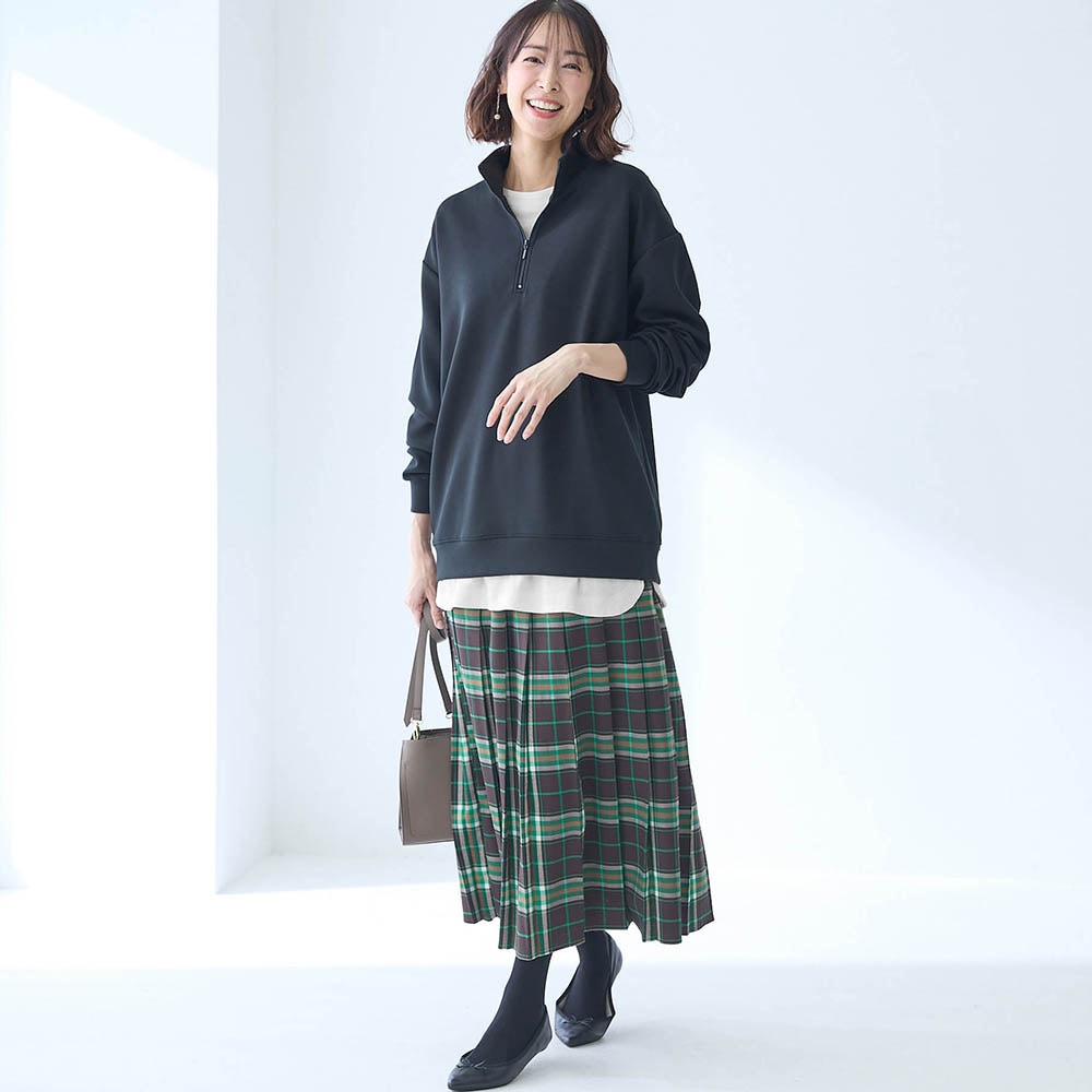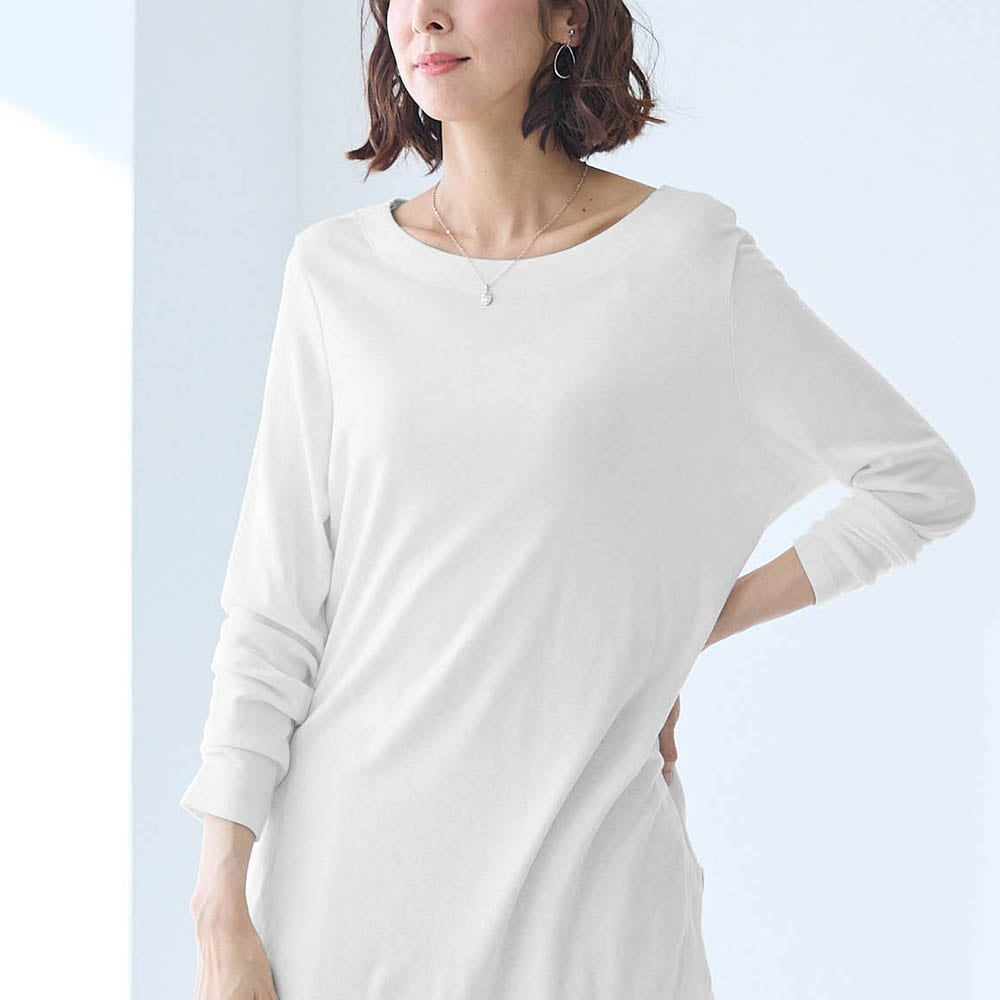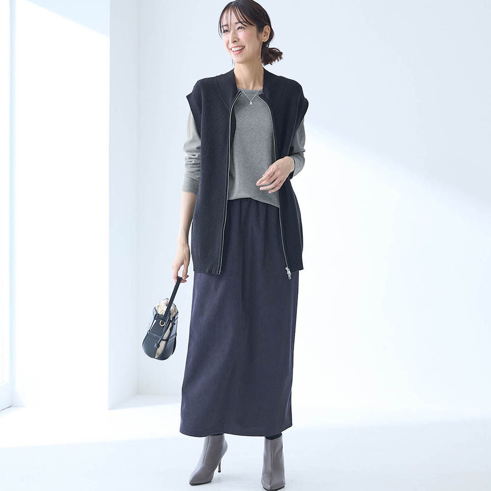 レーヨンが半分入っているので落ち感が良くセーター等を重ねた時にごわつきません。