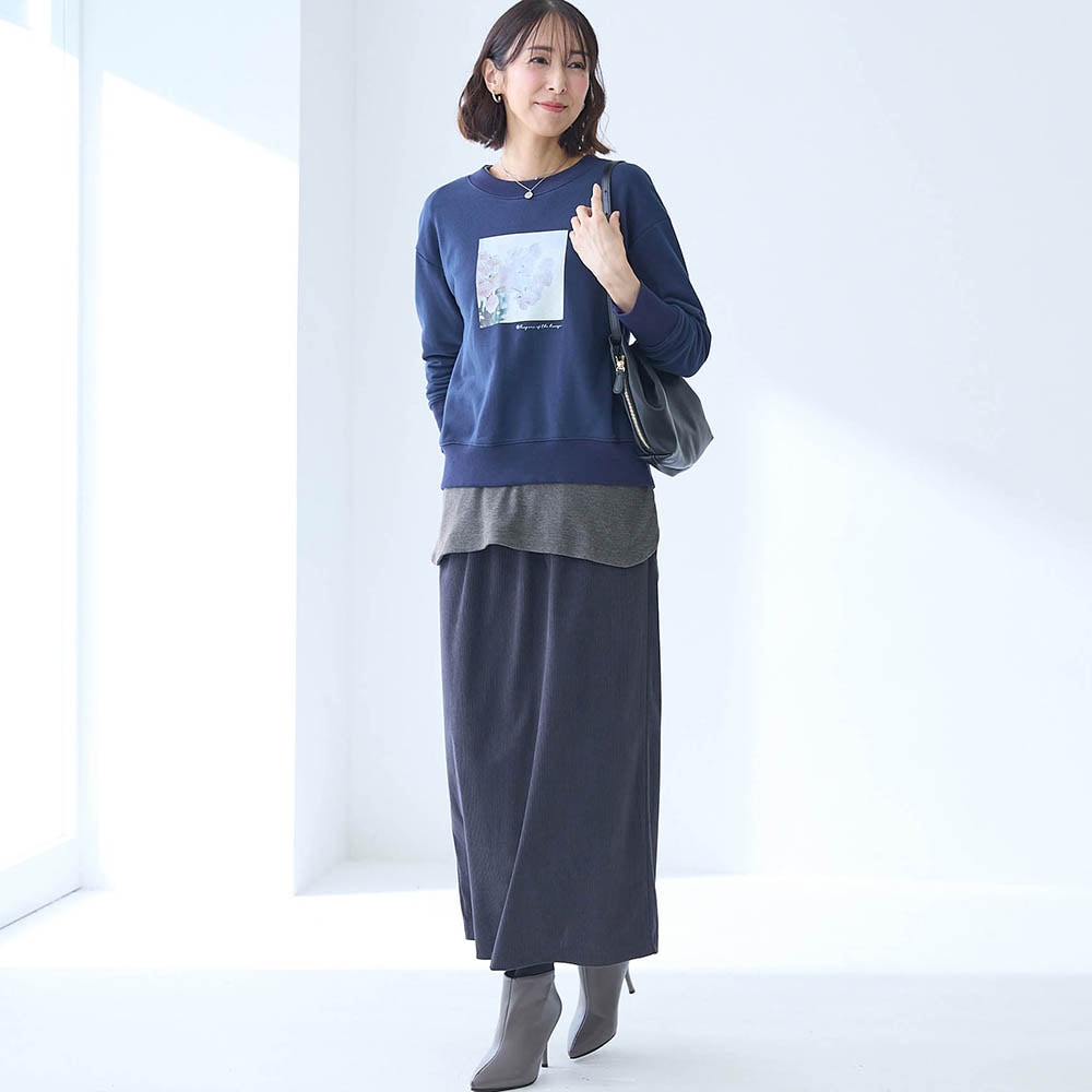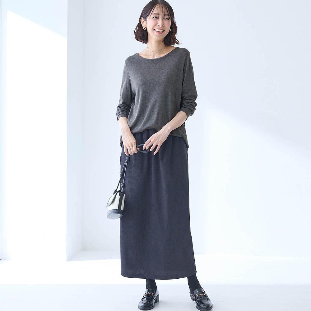 でも1枚で着るにはテロンテロンし過ぎていて体のラインも拾いやすいです。部屋着っぽく見えてしまうので、私はレイヤード専用にします。