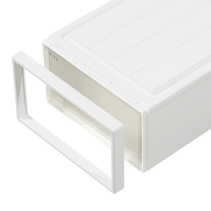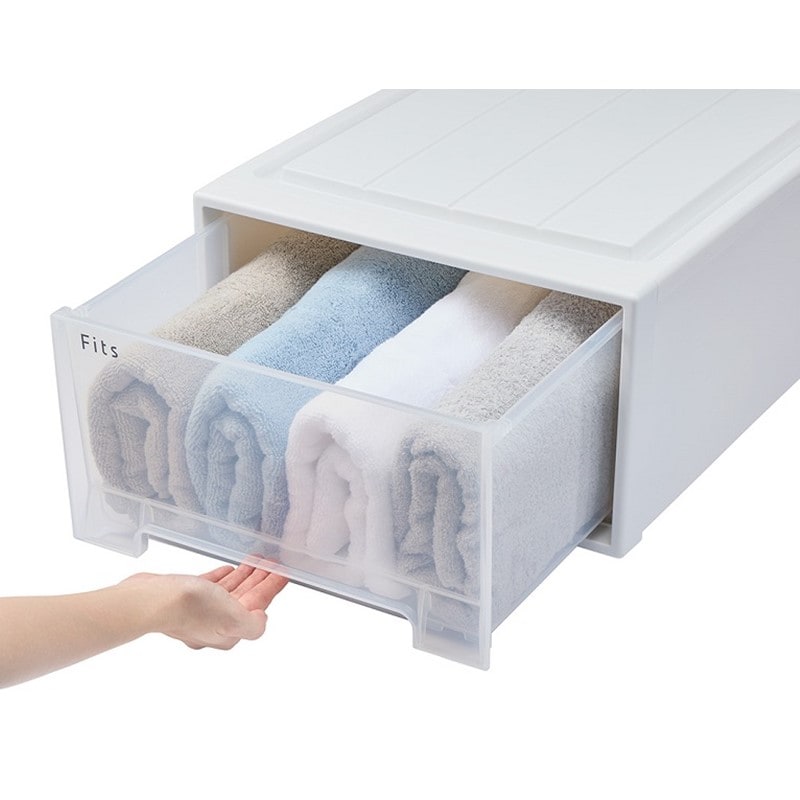 新居のクローゼット収納用に購入しました。学生の時に母親に買ってもらって使っているFitsは12年経ちますが、たわみもなく丈夫でこれはとても長く使えると思い、今回新居用に追加購入を決めました。12年前のものとサイズが変わっておらず、今回購入したものと合わせてピッタリ収納できました。 引き出しは完全に取り出せるので物入れには大助かりです!また、前面には引き出しストッパーが付いているので移動時や、こどものイタズラ防止にもなるなと思いました。 クリアなので中身が見えるのも収納用品を探すのに便利だと思います。クローゼットの中はお客さんは見ないからクリアでも問題ないですね。 また、シンプルな形なのでほこりが溜まってもあちこち拭かなくても一面をサッと拭くだけでキレイになるのも絶賛したい理由のひとつです。 これは本当に長く使えそうです!