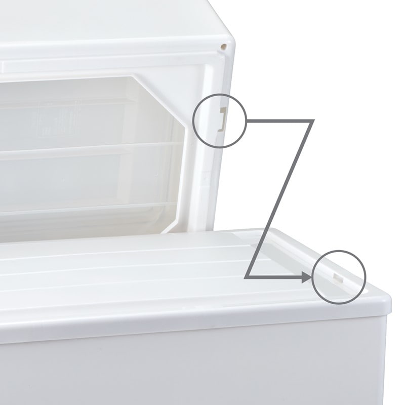 引出しケース下部にストッパーがついておりますが、引出し底部を押し上げながら引き出すと取り外すことができます。