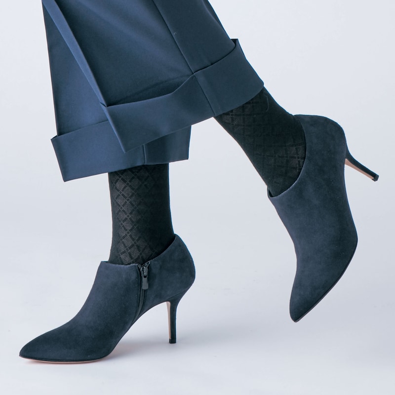ふくらはぎを高い位置にして脚長効果を実現。つま先と足くちは、ゆったりとした設計です。
