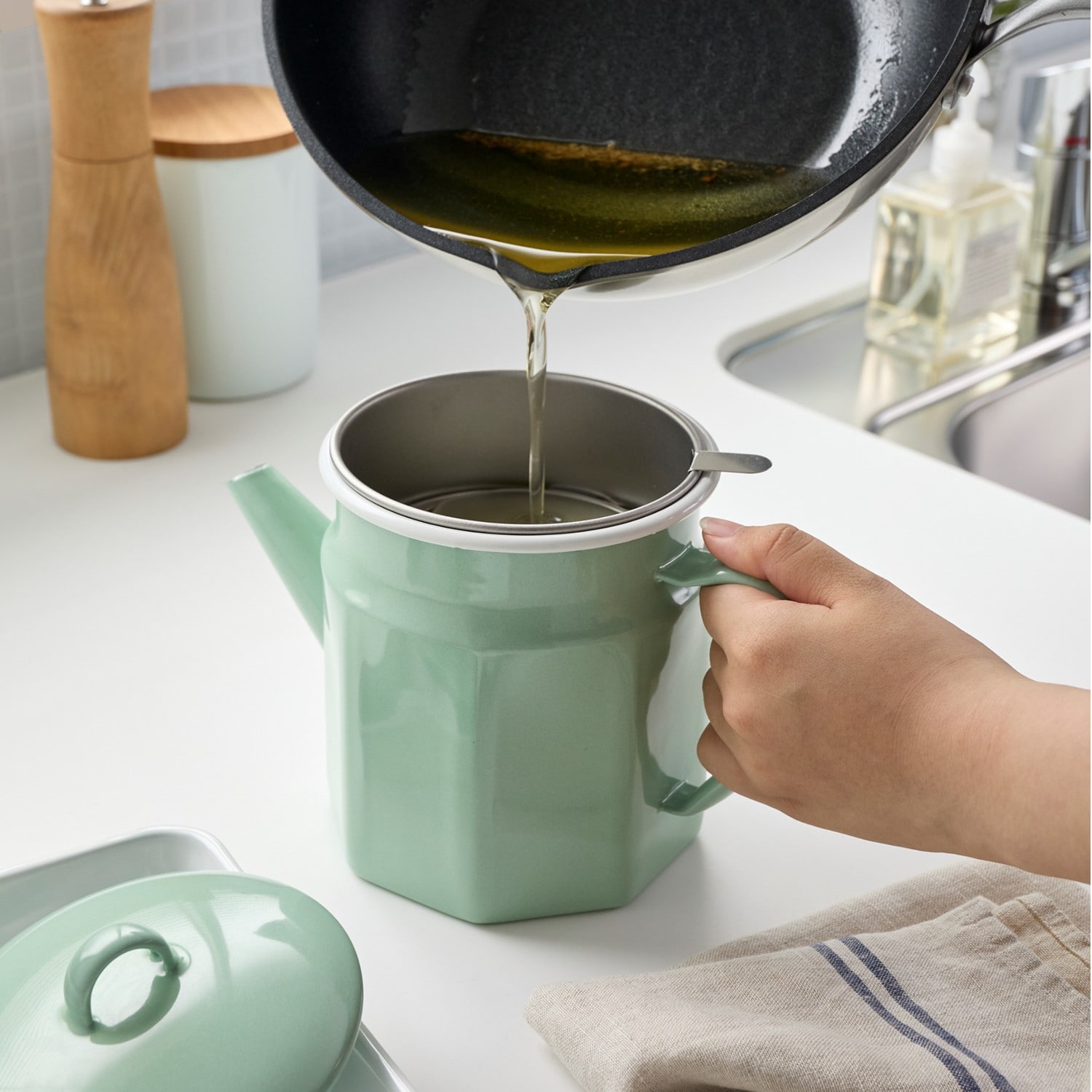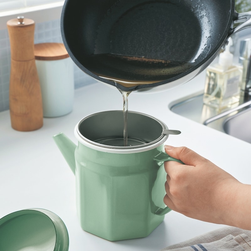 揚げ物を始めようと思い、いろいろオイルポットを探していたところ、お買い得なこの商品を見つけて購入しました。見た目もオシャレで、大事に使おうと思います。