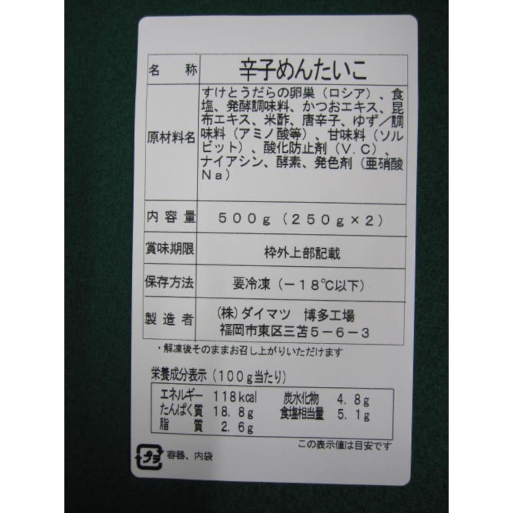 本商品は、ちゃんと焼き辛子明太子として焼くことが出来る、状態もお味も良いお品でお買い得に感じました。また、250g×2袋で冷凍されているので、少量ずつ解凍して食べる事ができるお気遣いも、ありがたいです。