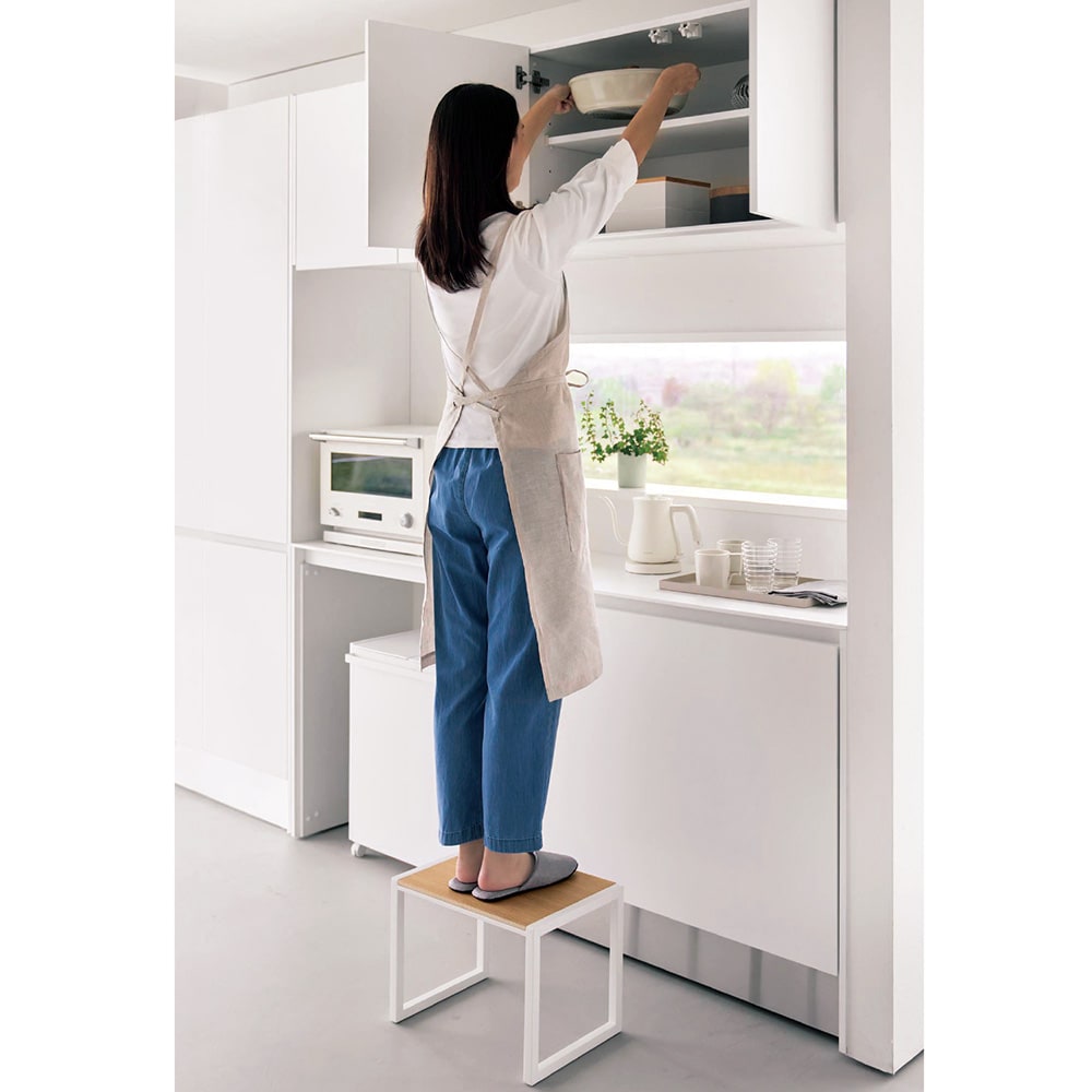 安定感があり安心の踏み台です。キッチンの端に置いてますが時々座るのにもピッタリ!動かす時も軽いので負担なし、見た目もスッキリ!と想像以上に使いやすい。今までは、折りたたむタイプの重みのあるステップ型を使ってたのでこんなにコンパクトでキッチンに馴染む物を購入できてよかったです。