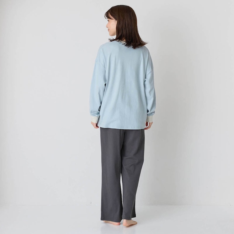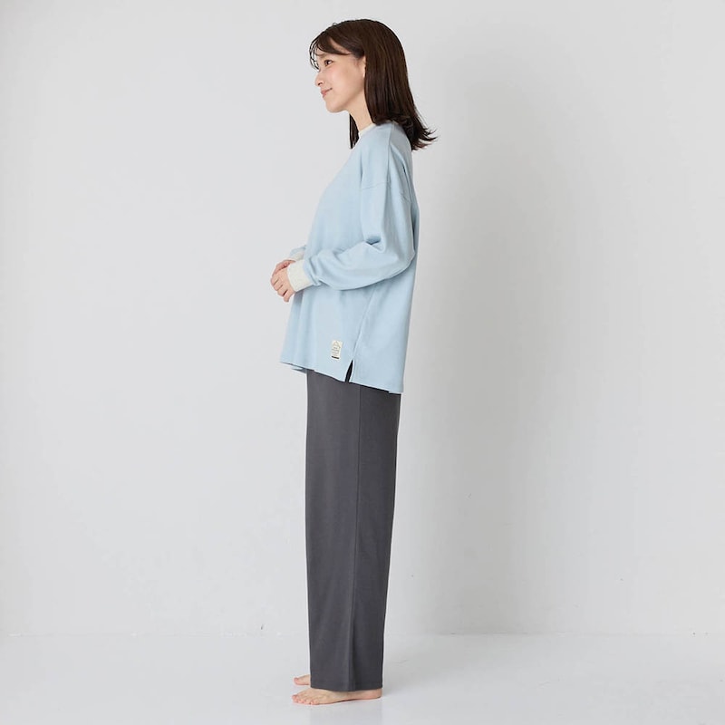 私は人工股関節で脱着が困難なため、裾がワイドタイプでかつ綿素材のパジャマを探していました。この商品は私の欲求をすべて満たし、更に肌触りがとても柔らかです。選んだボーダー柄は色も優しく、おしゃれでパジャマと言っても室内着で使えます。