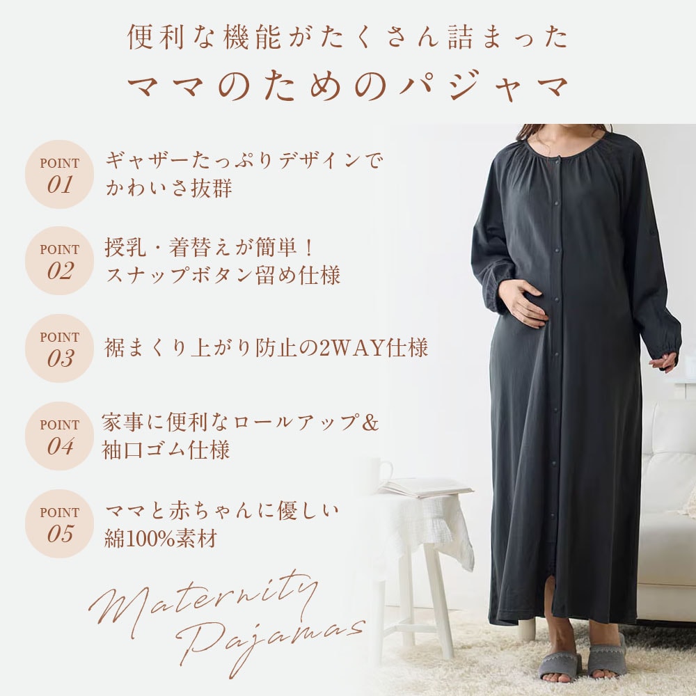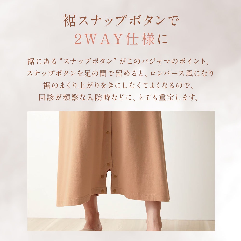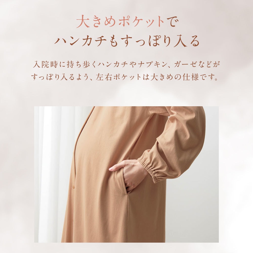 入院準備に!マタニティサイズギャザー2WAY綿素材ワンピースパジャマ 【長袖 産前・産後】