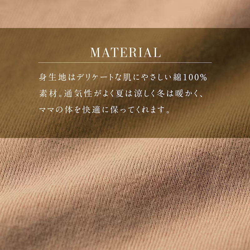 ・身生地はやわらかな綿100%素材でママも赤ちゃんも安心
