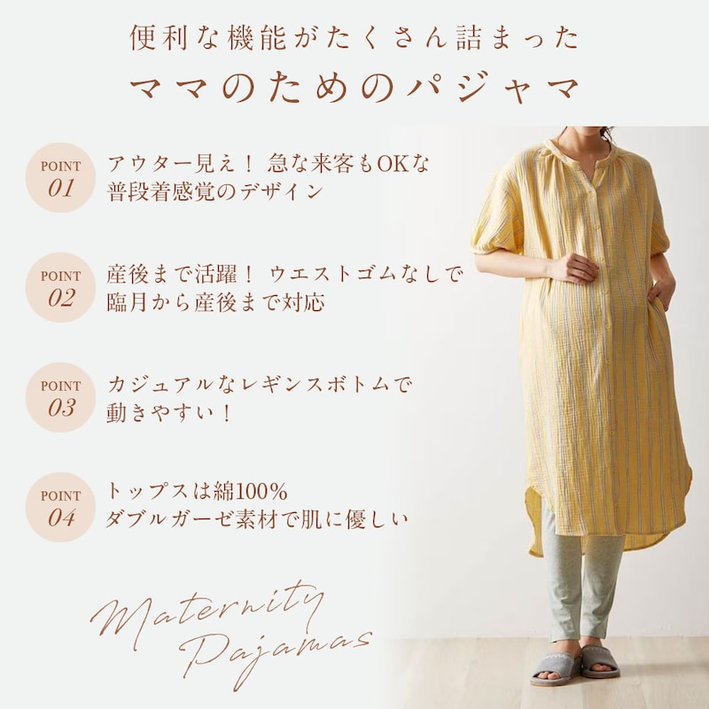 以前の出産でガーゼ生地のパジャマを購入したときには、生地にゆとりがなくパツパツな感じで、あまり心地よいとは言えませんでした。