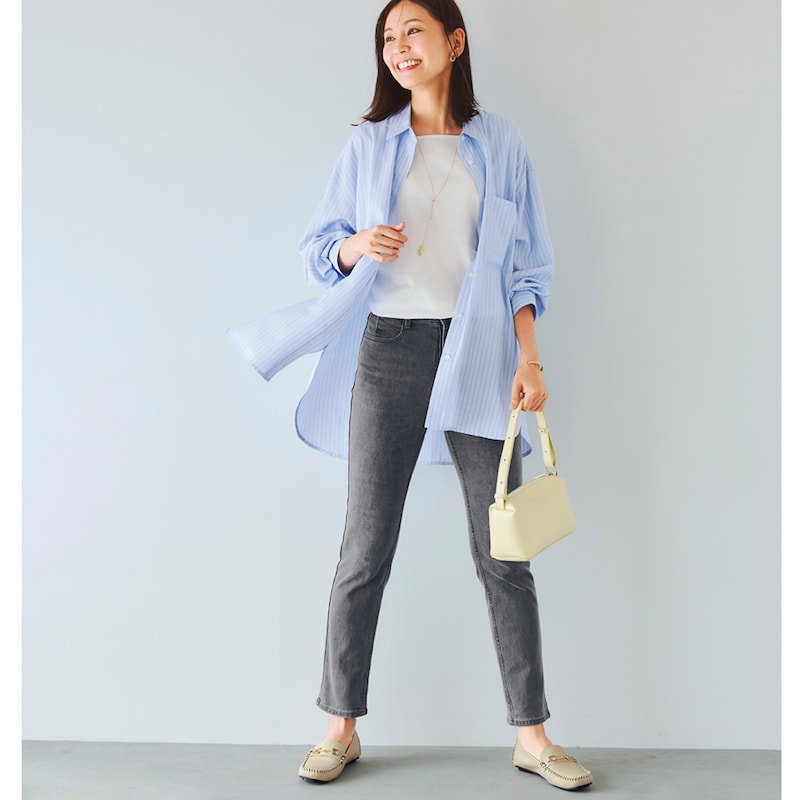 標準的なMサイズ体形なので、今まで「年齢向け」パンツは買ったことがありませんでしたが、デニムをお掃除着以外で着られればと初めてこういう商品を購入。 最初封を開けたときはMにしては細目?と思いましたが、穿いてみたらラインを拾いすぎず、かといって余計な余りも無く、すっきり見えます。 ホントにきれいに着られます。「体形に合っている」というのはこういうことなんだと思いました。 最近はハイウェストのパンツも多くありますが、ハイウェストほどではない「穿きこみ深め」なので、その点もラク。短めトップスでもかがんで背中は出ません。 生地は綿が70%しか入っていない割にオール綿のような見た目ですが、実際は綿以外の素材が30%なので軽く、ストレッチも十分。洗濯後も早く乾きそうです。 久々に家とワンマイルを超えた外出にデニムを穿こうと思えます。今回はきれい目を考えて濃い方の色にしましたが、色落ちの方でも良さそう。リピ検討中です。
