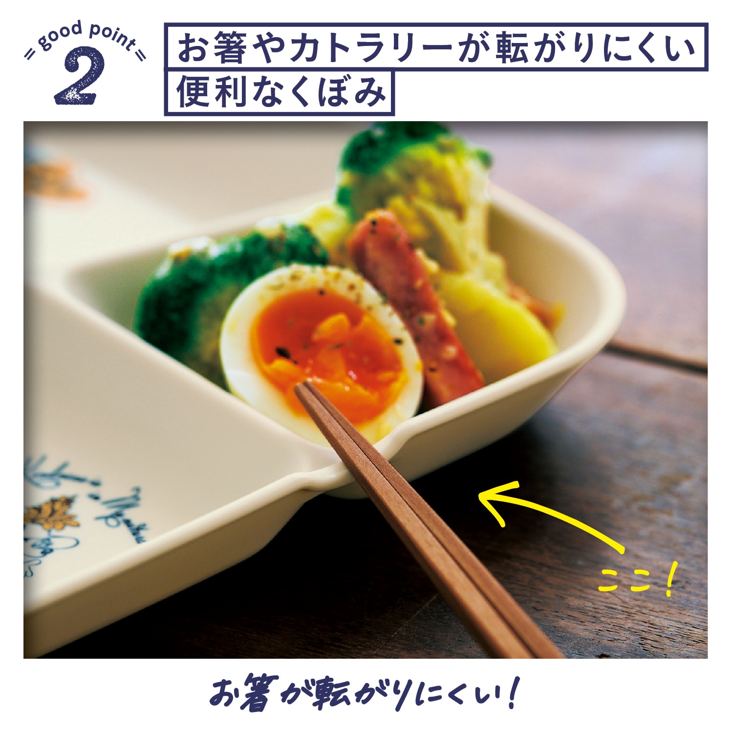 ●お箸やカトラリーが転がりにくいくぼみが便利