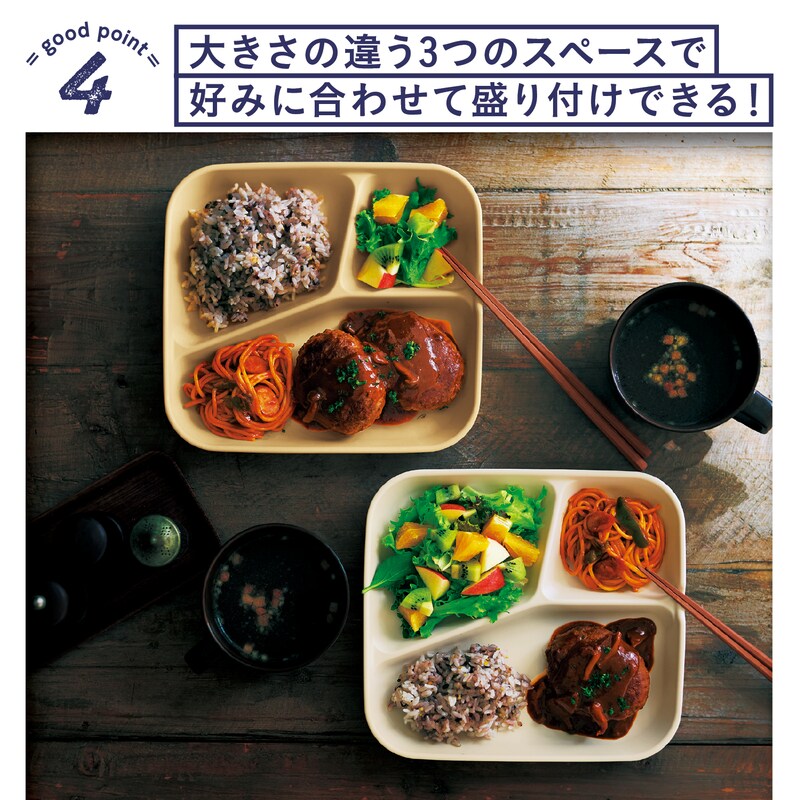 食べる人の好みに合わせて盛り付けできる仕切りプレート。