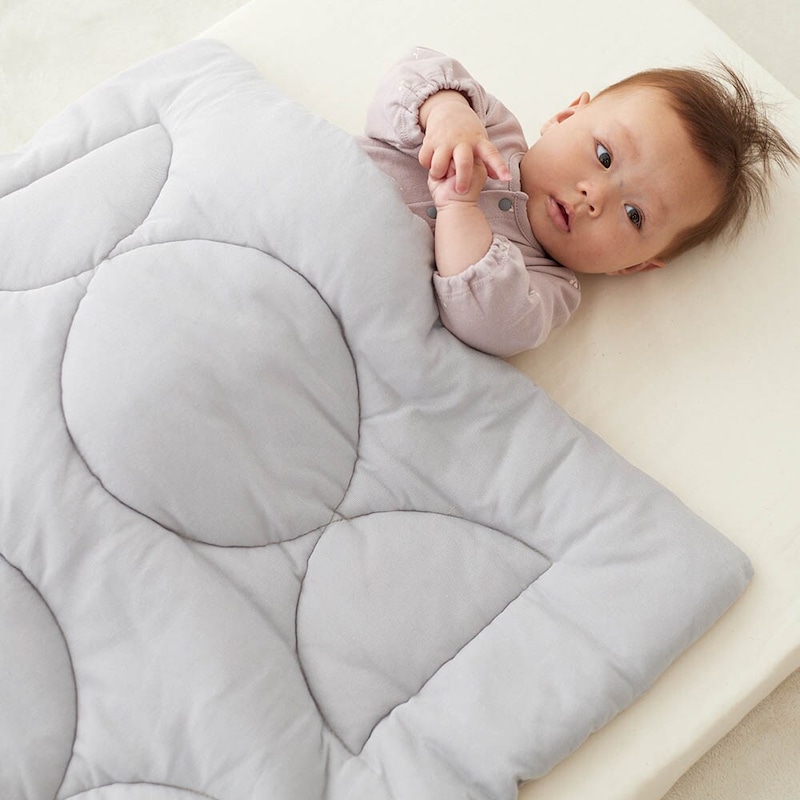 軽くて、洗濯もできるのでカバーなしで使ってます。ベッドがミニサイズなので少し大きいのですが支障なく使えてます。色がもう少し明るかったらいいのにと思います。