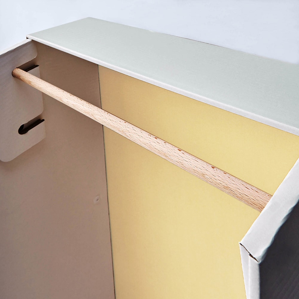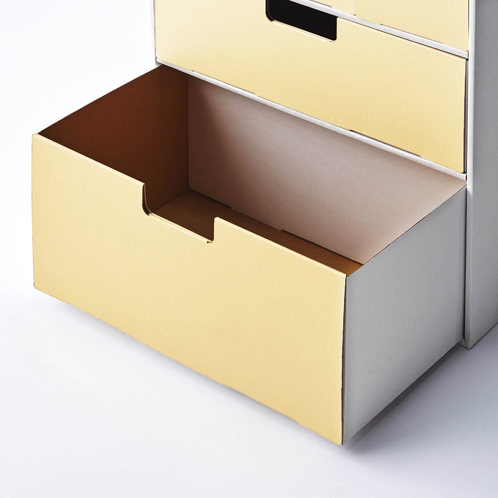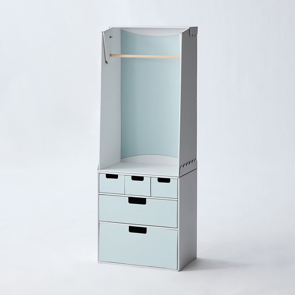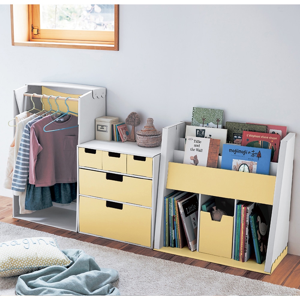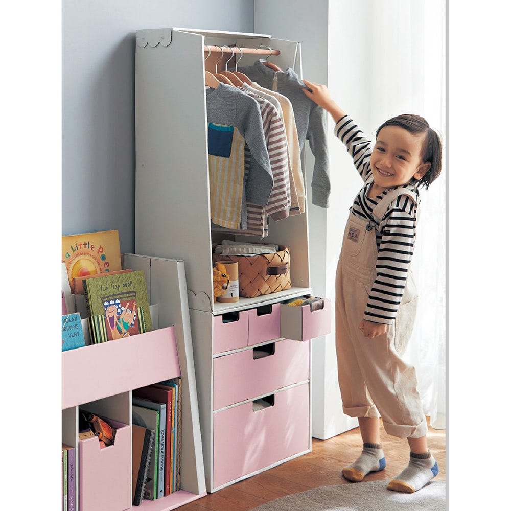 2歳の息子のお洋服収納に購入しました。 お部屋が広くないので、小さめな物で使い勝手の良いものを探していました。 この商品は希望のサイズで、尚且つ段ボールで出来ているので不要になった時も簡単に処分できると思います購入しました。 作るのは1人で1時間くらいかかり、思ったより大変でしたが、説明も分かりやすくてテレビを観ながらせっせと手を動かして気付いたら出来てました。 引き出し収納もあり、洋服も自分で選べるようにかけられ、夫も息子も気に入ってくれました。 ウチはあまり物が多くない方だと思うので、こちらの商品でオムツから洋服、靴下、パジャマなど全て収納できて快適です。 見た目はダンボールに見えないし、可愛くて気に入ってます! もう少しお値段が安かったら嬉しかったなーと思いました。