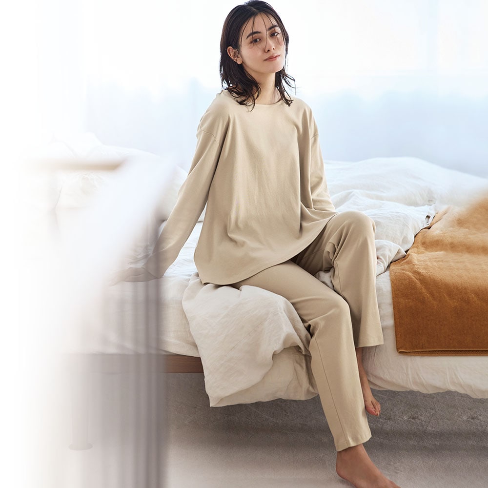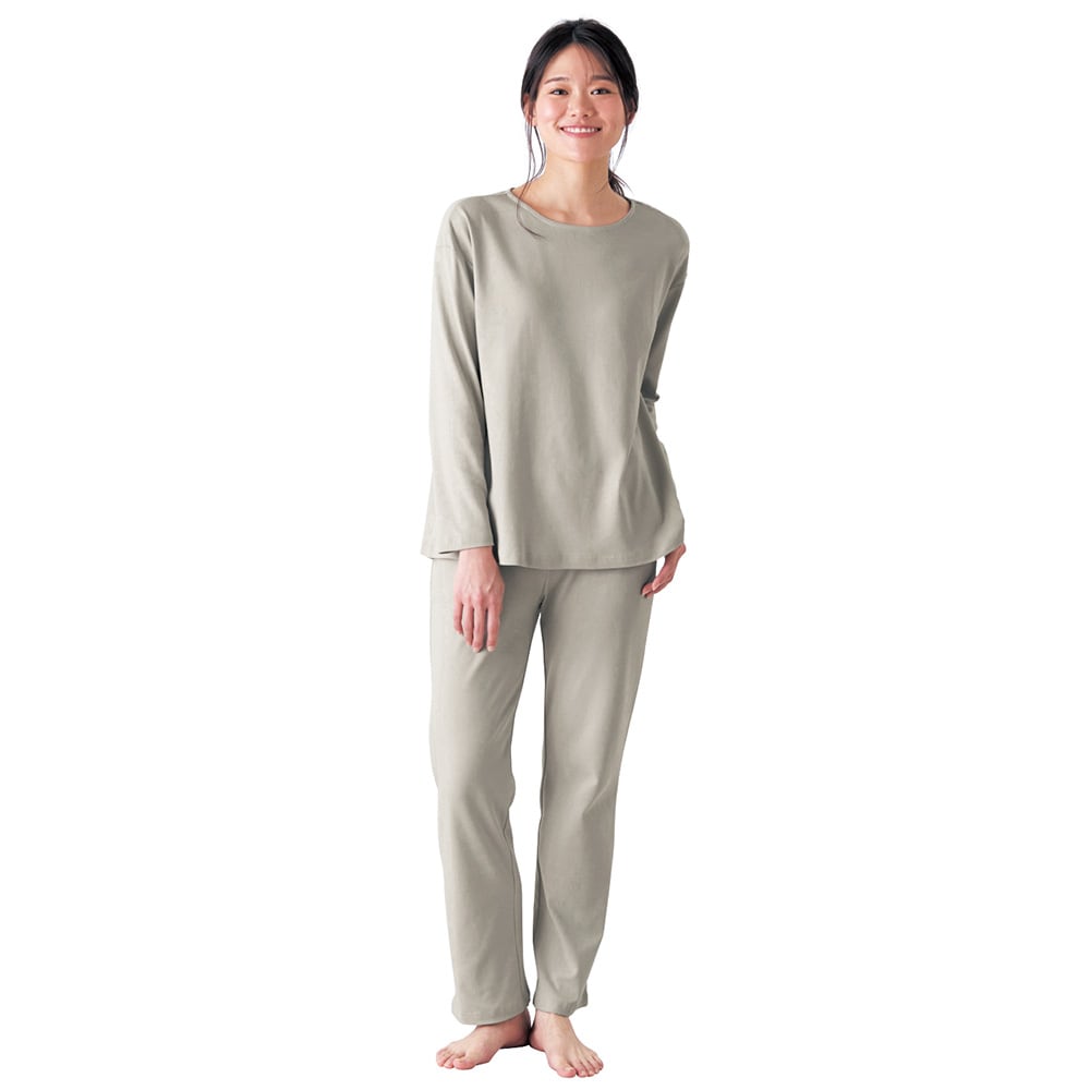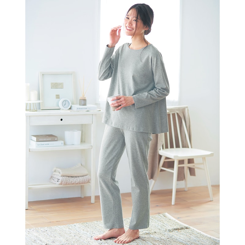ガサガサせず、肌触りが良くて気持ちいいです。敏感肌ですが、これは着ていて楽なのでとても気に入っています。 サイズはMを選ぶことが多いですが、レビューを参考にSにしましたが丁度良かったです。身長は160、適度にゆったりで胸も苦しくないです。シンプルでさりげなくお洒落なデザインもとても良くて、部屋着としても全然着れます。チャコールグレーにしましたが、シックで良い感じ。色違いも欲しい! 正直、敏感肌向けの生地よりもこちらの方が肌に刺激が少ないかも(苦笑)毛羽がないからなのでしょうね。上を見れば見つかるけれど、この価格でこの生地とデザインは大変ありがたいです。是非、別売りでいいので首が寒い時用の襟のついたシャツタイプや、暑い時用にショートパンツも作って欲しいです。 ちなみに敏感な人は寝る時にシルクのペチパンツを下に履くといいかもです。私はこのパンツでも気になる時は履きます。