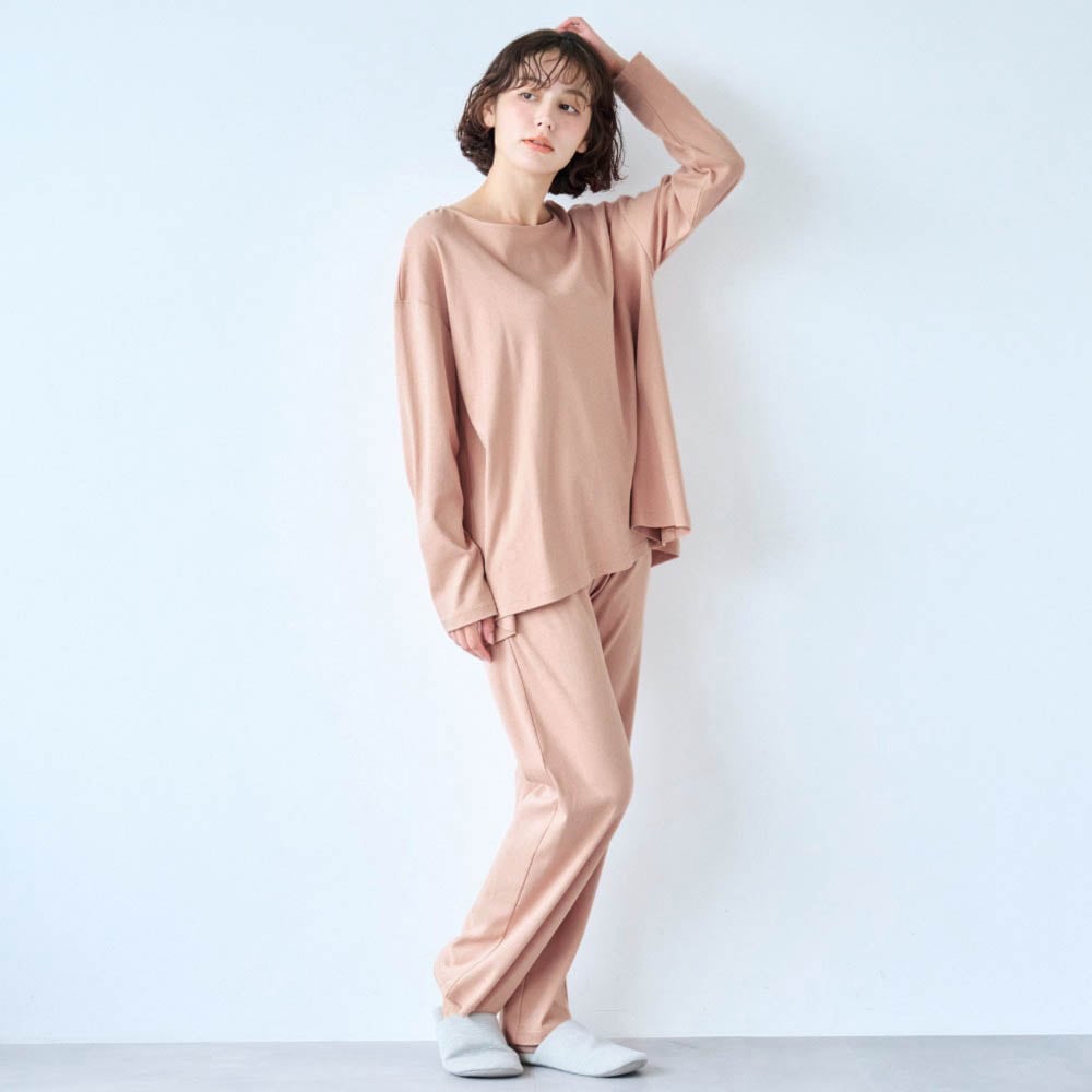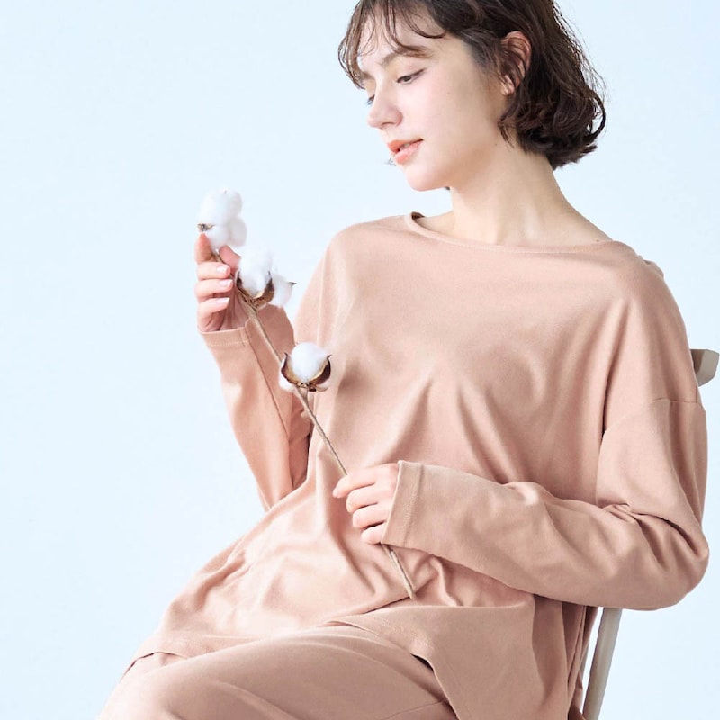 ガサガサせず、肌触りが良くて気持ちいいです。敏感肌ですが、これは着ていて楽なのでとても気に入っています。 サイズはMを選ぶことが多いですが、レビューを参考にSにしましたが丁度良かったです。身長は160、適度にゆったりで胸も苦しくないです。シンプルでさりげなくお洒落なデザインもとても良くて、部屋着としても全然着れます。チャコールグレーにしましたが、シックで良い感じ。色違いも欲しい! 正直、敏感肌向けの生地よりもこちらの方が肌に刺激が少ないかも(苦笑)毛羽がないからなのでしょうね。上を見れば見つかるけれど、この価格でこの生地とデザインは大変ありがたいです。是非、別売りでいいので首が寒い時用の襟のついたシャツタイプや、暑い時用にショートパンツも作って欲しいです。 ちなみに敏感な人は寝る時にシルクのペチパンツを下に履くといいかもです。私はこのパンツでも気になる時は履きます。