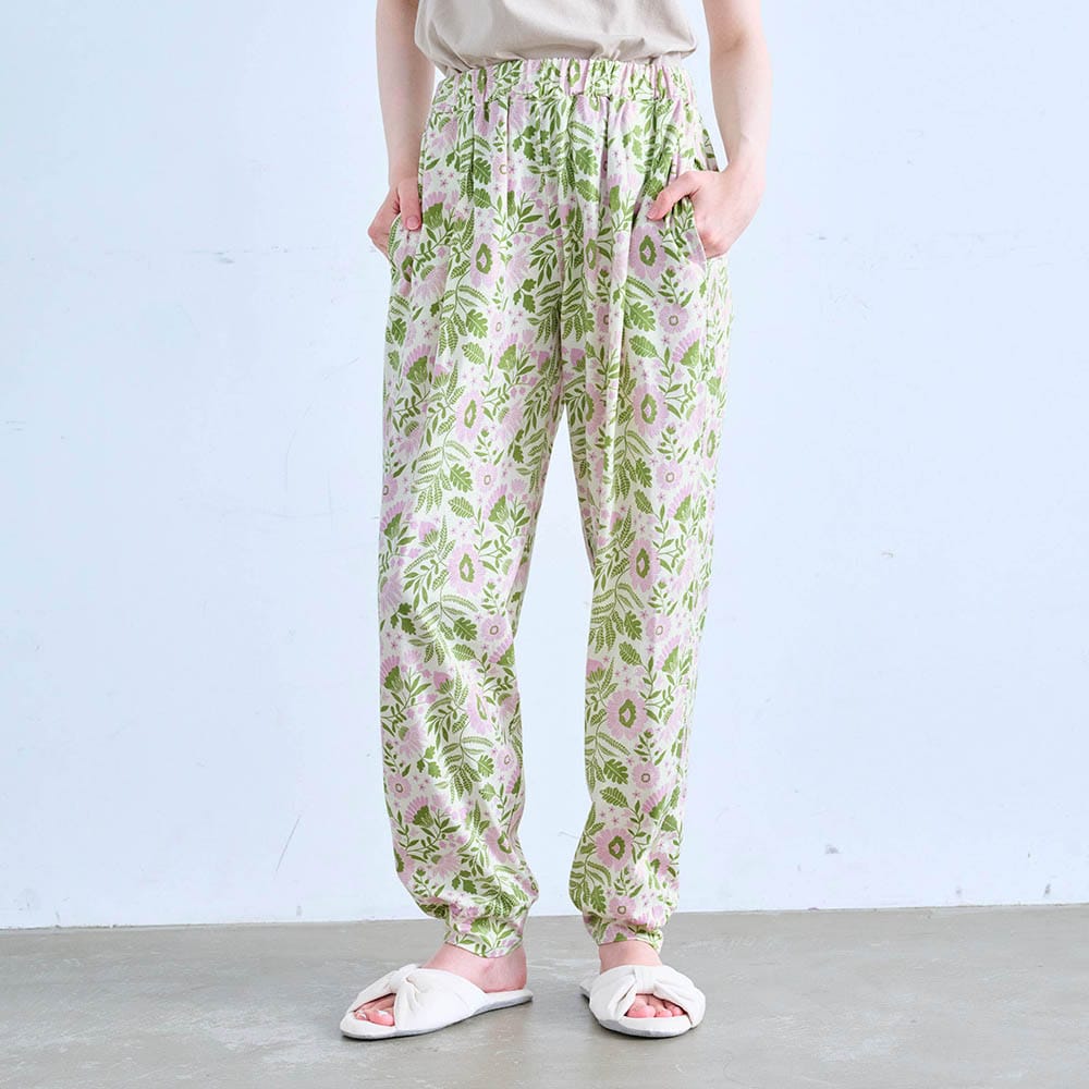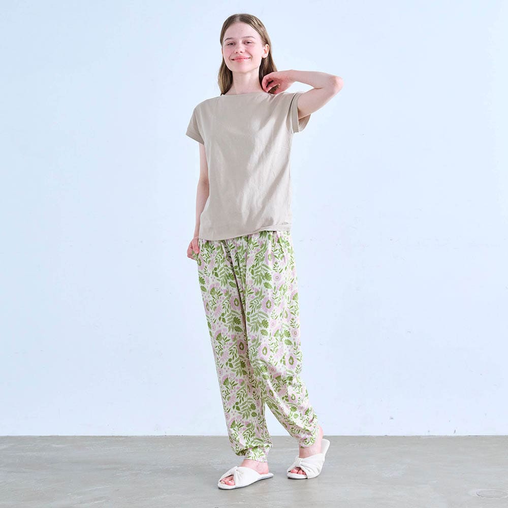暑くても足首冷え感があるので、寝るときも、フルレングスで裾が絞ってあるパンツが必須です。163センチですが丈がちゃんと足首まであるし、裾がずり上がらないので、安心して眠れます。こういうデザインなかなかないのですよね…。ミニラボ柄可愛いですが、ミニラボでなくても買います。昔ベルメゾンで沢山買ったアラビアンパンツがくたびれてきたので、是非こういうデザインをもっと作って欲しいです。