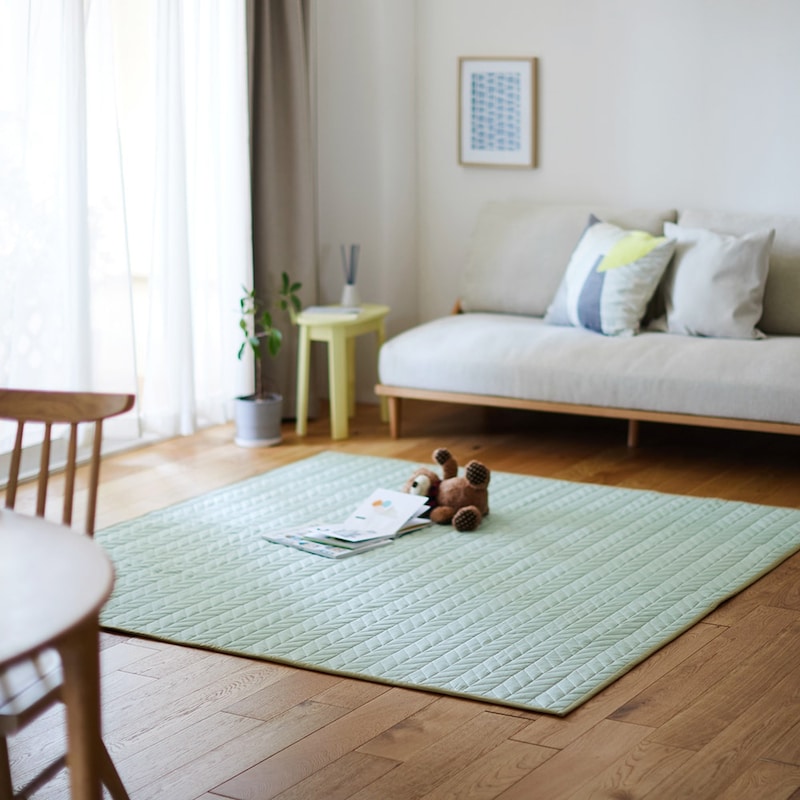 安っぽくなく さらりと気持ちいいです。 掃除機かけも ズレたりする事なく 掃除も楽ちんです。 家族にも好評でした。 デザインや色が増えたらいいな♡