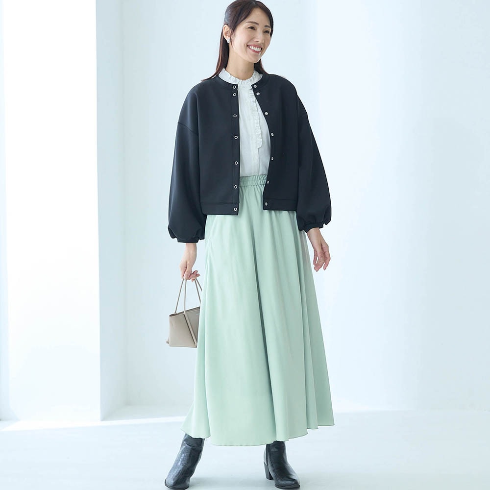 緑色のロングスカートを探していました。きれいな色で満足しています。形もふわりとしていて良いです。ウエストがゴムで着やすいです。白の短めのTシャツと合わせると色合いが鮮やかできれいです